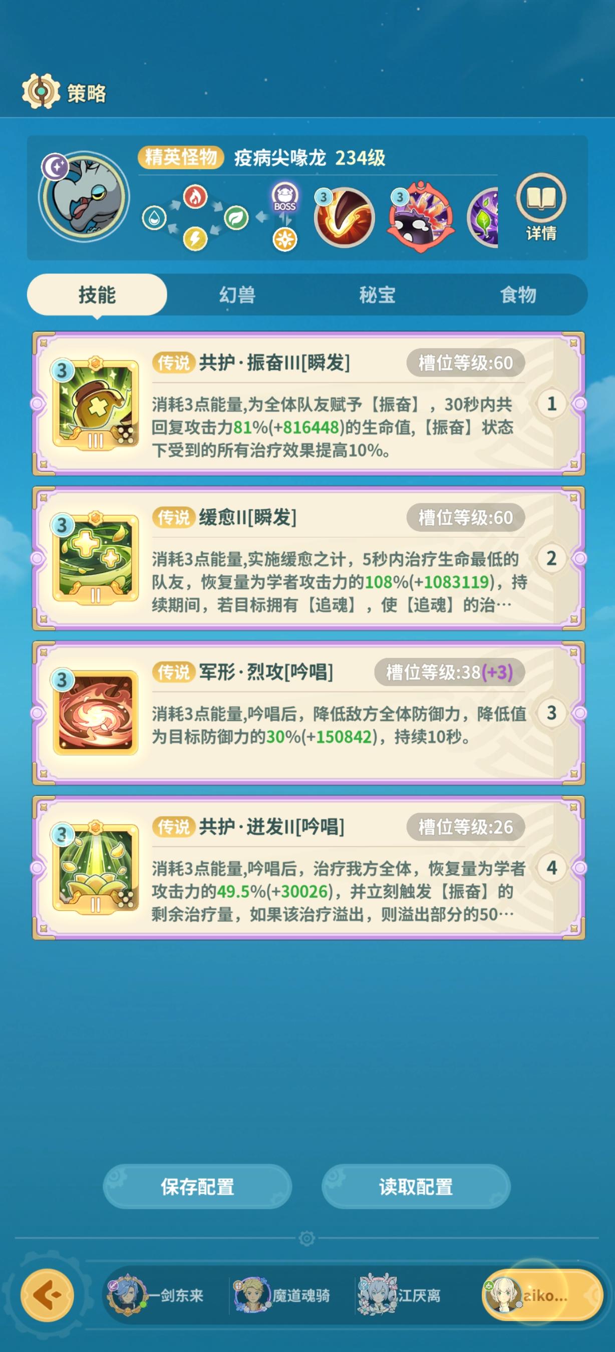 从阿卡塔绿洲开始 记录一下自己队的技能队伍配置: 骑 巫 法 学越级:正常越3 极限越4想来抄作业 没找到 自己做一份记录从150才开始 前面稀有boss没记*肯定不是唯一解,只是正好我们用这套过了#云海之下组队冲榜 图1-4 快拳乌比(小怪)图5-8 诅咒姆拉比(160稀有)图9-12 巨嘴乌鸦图13-16 火爆阿力