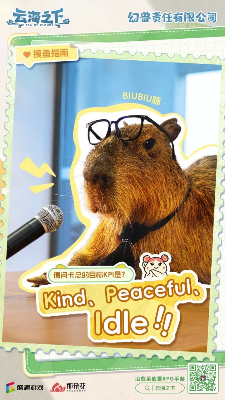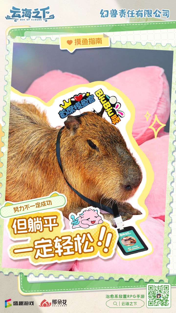 卡皮巴拉的摸鱼哲学: 谁说打工人就是牛马?也可以当个卡皮巴拉! 刚角龙Boss的办公桌?我躺! 潜入幻兽食堂? 终极料理让我来试试!舒服的办公椅,zzzzzzzz 幻兽同事,让我贴贴~ 柔软的草地和新鲜的空气,呼~ (★ ω ★)众幻兽OS: BIUBIU豚一来,幻兽们的幸福摸鱼指数蹭蹭上涨! 预约云海,解锁更多卡皮巴拉的人生哲学!想吸卡皮巴拉?速来云海,520一起开摆~ 更有