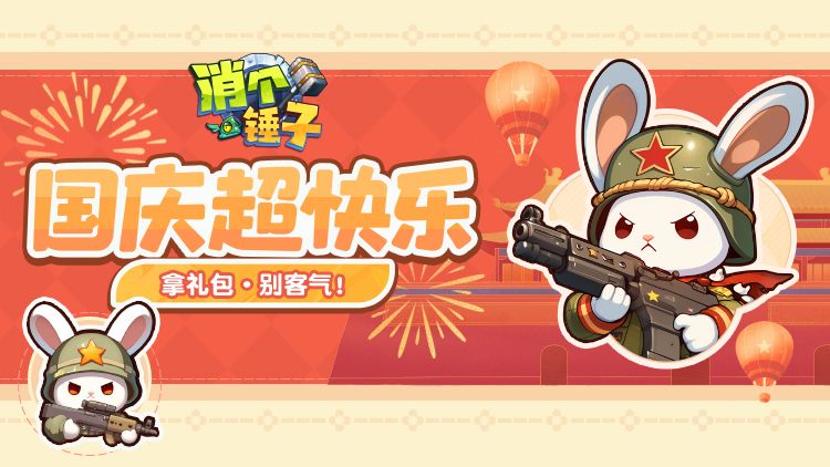 嘿,各位锤子勇士们, 咱们祖国母亲的生日到了!!锤锤也来凑个热闹,给大家准备了一份特别的国庆礼物!🎁 🎁 消个锤子国庆好礼:czgq1001 内含:钻石*300、金币*20w、三系核心碎片自选(5)*1 礼包码有效期截止至24/10/15 【兑换方式】 ① 进入“消个锤子”游戏主页面 ② 点击右上方菜单“☰”,点击“兑换码” ③ 输入上方礼包码,并点击“领取” 😀 好礼加码—— 国庆有奖话题大讨论