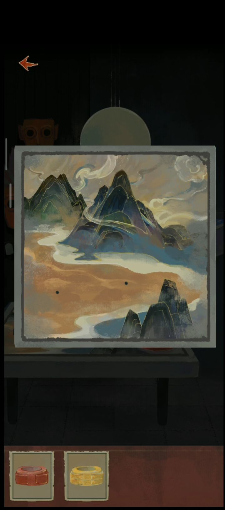 #栖云异梦2瑶山谣 第二章 异彩(下)①②红黄玉琮(中国古代的内圆外方的筒形玉石礼器)再次点击①②获得两个半块玉璧,合成为完整的赤乌玉璧,赤乌玉璧放入③中,打开后④⑤⑥获得一支毛笔,一块二十四节气,一块黑色玉琮⑦拿到火折子,打开火折子,⑧处会打开,拿到“天圆地方”玉琮毛笔放在⑦上方牛的洞中,流水会停止。得到绿色玉琮⑨点开,翻页,火折子热成像。左上角描述是玉琮摆放的顺序,摆放好后,如p