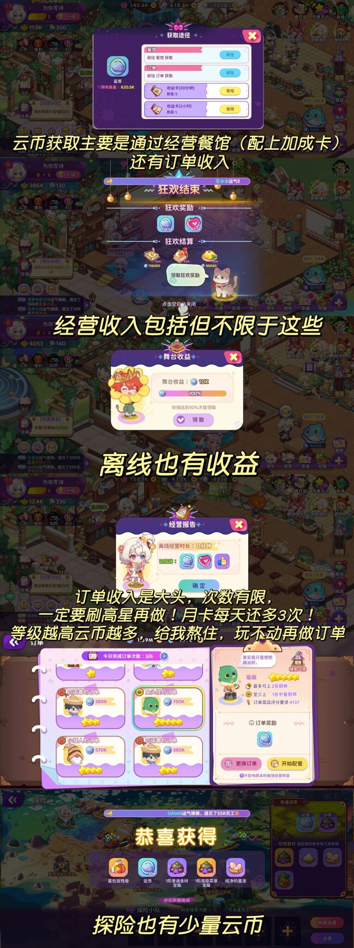 本帖是对于刚入手或者想去新服的玩家准备,如有不对的地方可以指出来我更改。①进游戏优先根据任务指引都,不要乱升其他的物品。因为餐厅升级条件的资源是有限的!开局第一个SSR是姜子牙(中餐),必不可缺少的厨师。前期就只有几道菜,所以主要经验都要给它,只推荐做中餐和西餐即可。②面对餐厅升级的装饰方面的支出,我们必须做到优先升级等级高的中餐和西餐,不要均匀全升,经验会严重不足。这里推荐:蛋焗饭,赛螃蟹