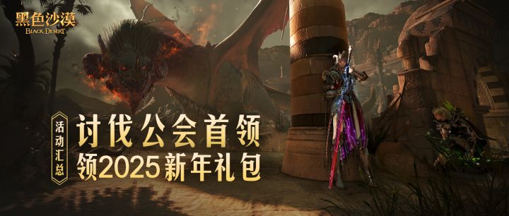 新的一年新的启程,很高兴《黑色沙漠》可以在2025年继续陪伴冒险家们!新年第一波活动,和公会的伙伴们一起冒险吧~黑仔也为大家带来了新年的礼物,快来看看吧!公会首领奖励翻倍活动时间:2025年1月2日(星期四)维护后 - 2025年1月16日(星期四)维护前活动规则:与公会成员一起进行公会任务,并讨伐公会首领吧!活动期间公会首领召唤次数翻倍,奖励也更为丰厚;同时公会所有成员的增益效果冷却时间