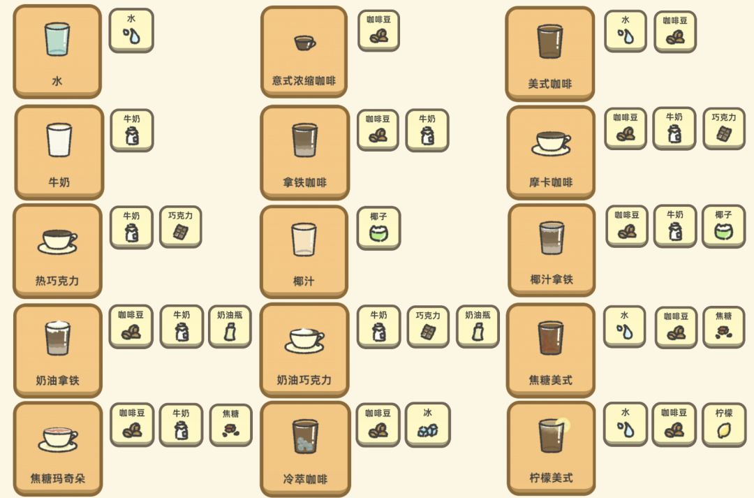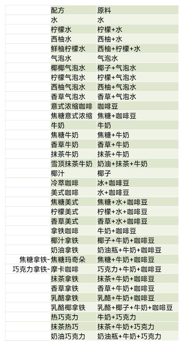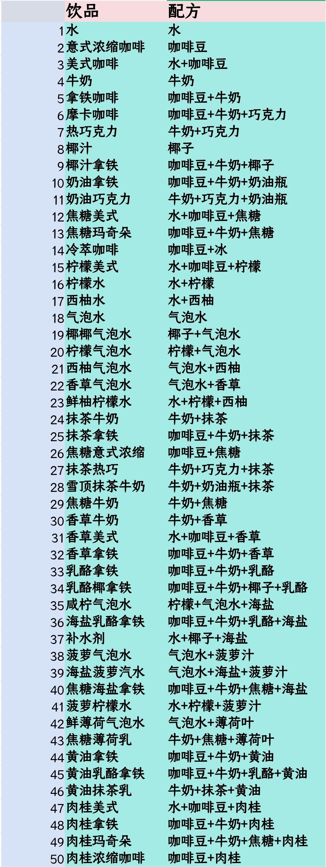 按自己习惯的顺序排的,仅参考 所有带冰的,就是在原配方基础上加冰 订单做错了会有提示,重做就行