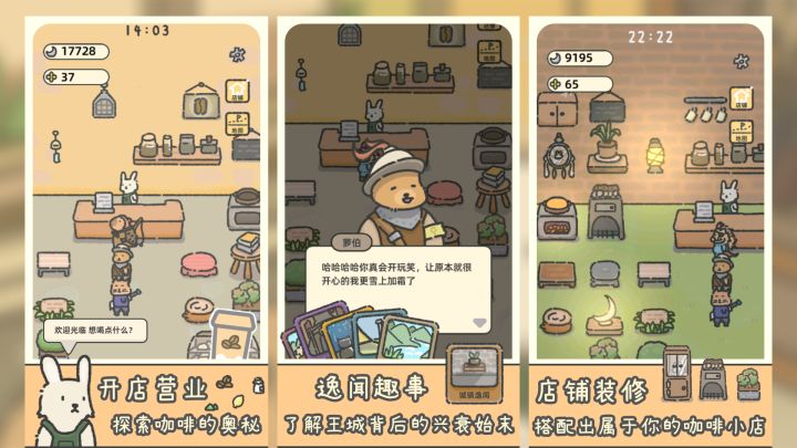 ⭐疲惫的打工生活让你踏上追寻退休生活的旅途,在神奇的魔法列车中误入魔法的世界。⭐你可以使用原材料做出各种各样的饮料,让各路勇者在神奇的咖啡饮品中彻底沦陷!⭐你还可以赚钱升级,装饰店铺,布置更多的桌子以供更多小动物堂食使用,你的小店你来定制!⭐通过与各路冒险者顾客的对话,了解各个小动物的身世逐步了解这个昔日辉煌的王城历史吧!⭐点击右下角预约,参与报名测试,祝大家好运哦!#游戏种草计划 #发