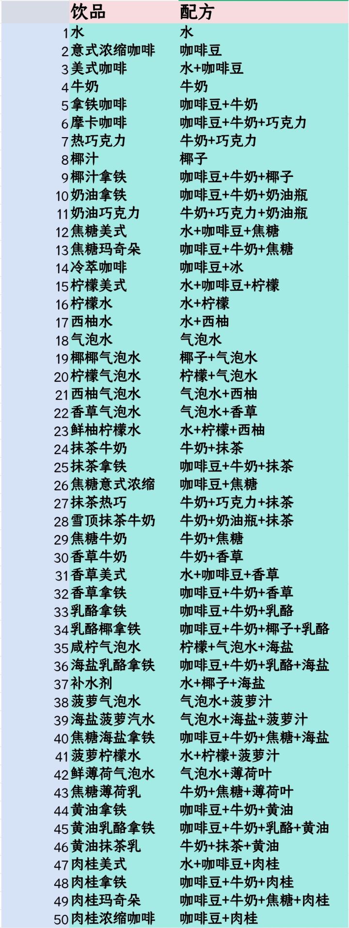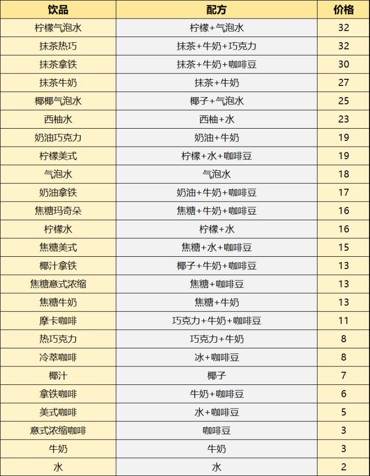内测版本50饮品配方