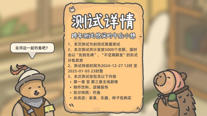 嗨!终于来啦,望月屋的跨年测试~从今年的五月份开始,我们立下了这个项目,到12月底,我们已经开发了7个月了!这七个月也得到了不少反馈和店长大人们的反馈,我们都有在关注同时也修复了很多影响游戏体验的问题这次我们为大家带来了超多新内容和新玩法测试详情1、本次测试为封闭式限量测