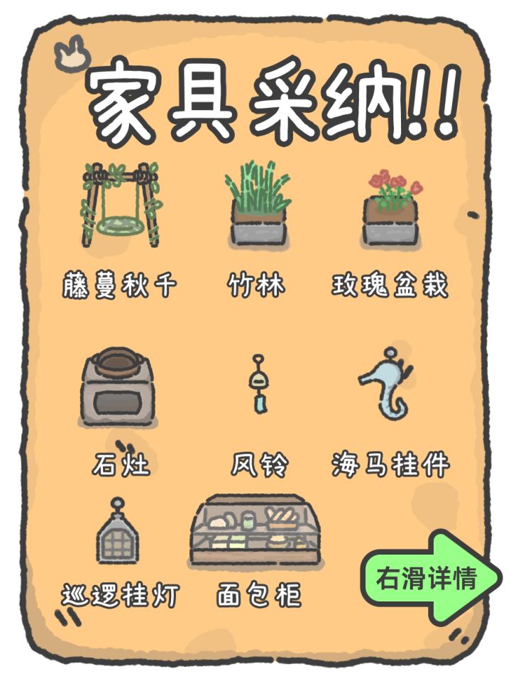 刷了很多次都没刷到新的家具,应该是集齐了吧,如果有漏的可以告诉我。不会布置,大多数家具都乱放。期待更新