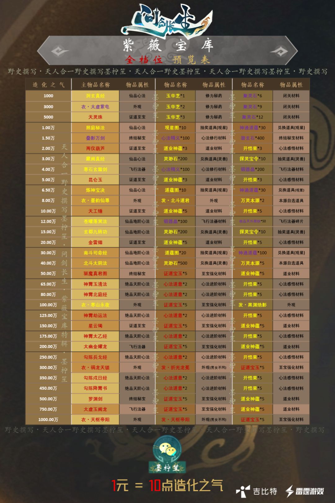 感谢所有参与统计表数据查找的玩家,现在给大家带来一张关于“紫薇宝库”的奖励总览表~ 认准一区野史史官・墨柠笙 #问剑长生 #紫薇宝库 #问剑长生攻略 #问剑长生史官