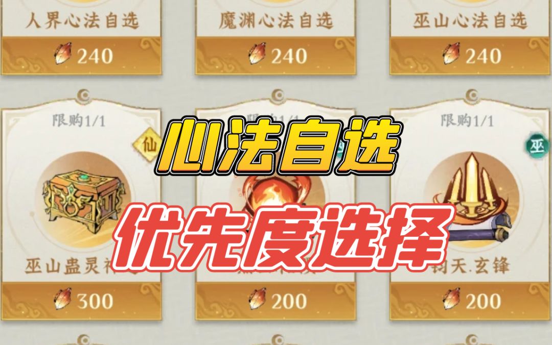 (合体版本修改版,过期仅供参考,以最新攻略为准) 话不多说咱们直入主题 顺序即是优先级 外场:妖丹,蓝紫心法,法相材料 ,开悟果,蓝色火种,灵泉果(玉不多就不要买了) 内场: 20玉的聚灵石,成品丹药,妖丹,道业神蕴,开悟果,真灵血玉,源初甘露 开放巫族版本后,外场加上玄明沙和玄机玉,内场则根据自己玉的情况购买万象玄石 注:玄奥系统相当于第二个心法,同样是给大量基础属性 内场的妖丹是100玉 ,外