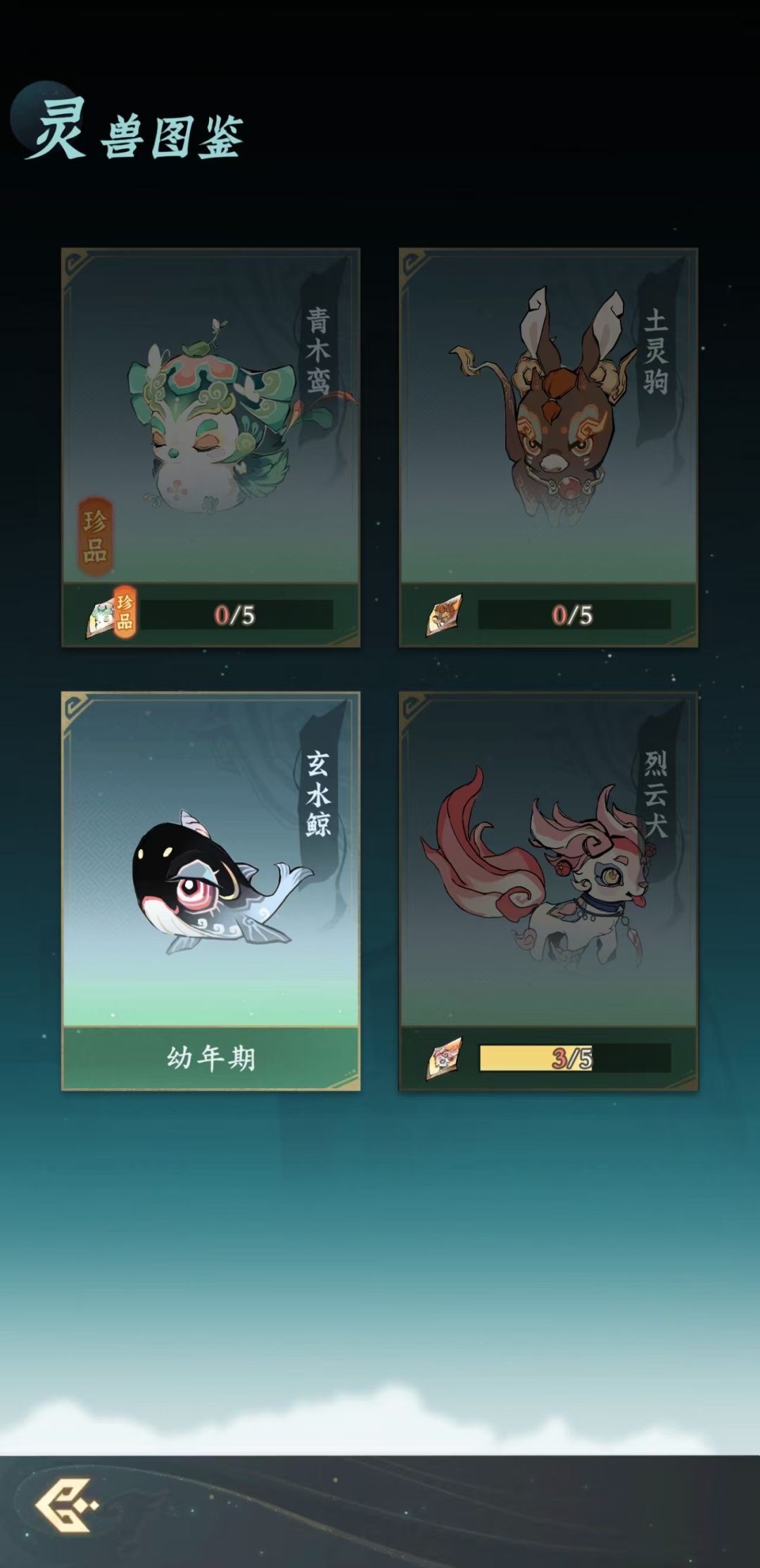 问剑长生新手攻略(3)灵兽篇 经过这几天的修炼想必各位道友也已经或是快要突破至元婴境界了,所以为避免大家走弯路,本肌肉史官也是在昨天突破到了元婴期,并且研究了元婴期新开放的战力系统灵兽部分,让后续的道友对于灵兽的养成有更好的规划少走弯路。 1. 灵兽种类 灵兽目前有四种青木鸾,土灵驹,玄水鲸,烈云犬。每个灵兽的技能和效果不同,烈云犬是提升暴击,土灵驹是提升控制,玄水鲸则是提高伤害,青木鸾是让对方