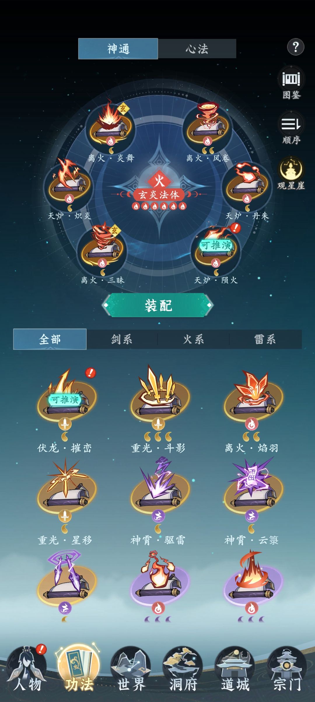 大家好,我是呱呱,本期为大家带来火修合体神通过渡思路。(攻略为参考,建议各位玩家按照自身神通数量以及情况,选择性的参考) 首先是火系合体神通 为烈山流派 过渡神通(按照自身神通情况进行取舍) 1.(纯火) 揽星-业火-巡日-阳陨-炎瀑-星撩 适合想要快速体验烈山玩法的玩家 2.(人火-天) 揽星-业火-巡日-炎瀑-星撩-三昧(天) 适合于低氪度玩家,以及人界就开始玩火的玩家。(这套其他的神通全拉到