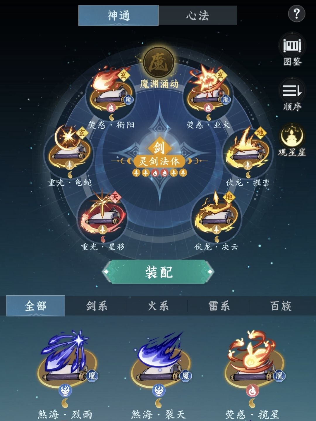 目前一天二地三玄!二伏龙二重光二萤惑!(一天一个“冷”知识) 通过战力对比,和全玄灵界神通的玩家,神通差距大概在5千万左右。 不过在实战中,地级人界神通和玄级灵界神通的差距不大。(图三) 其实歪出挺多煞海,之后估计会换四剑+二煞海 TIPS:选择衔阳和业火,一是因为火系更快触发星移; 二是分别可以在论剑和商会换,这样宗门商店和道蕴兑换正好能换心法和紫色神通;(灵界后更缺紫色狗粮,心法也要紫色心法碎