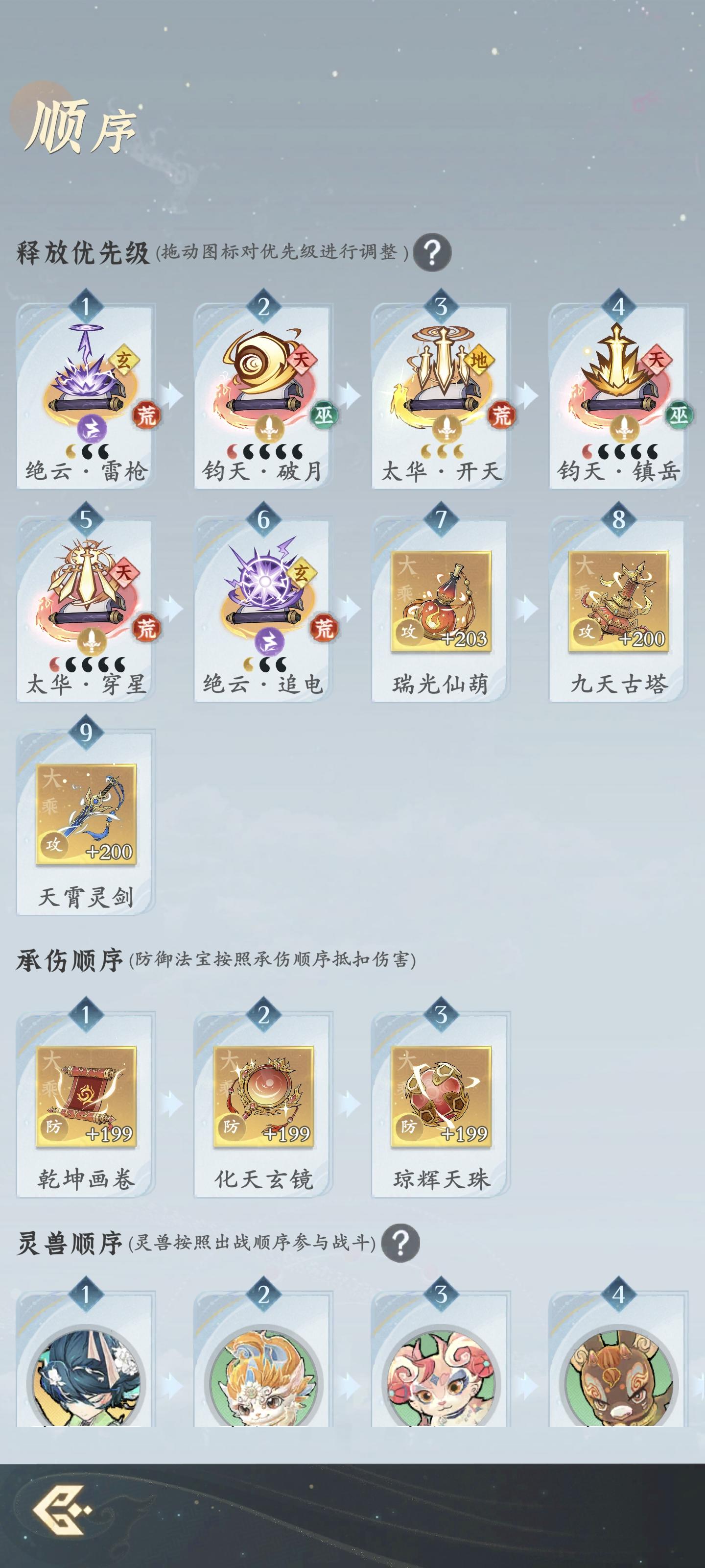 本人10513剑修玩家,3月开服到现在一直玩剑。目前合体前期来分享下我对剑的理解。 目前没有玩丹朱炽炎套路但是商店也在换着,之后成型会来做综合比较。 1. 目前六耀还没有天,上贯日六耀破月镇岳影催经过我本人的测试,没有断天带霜寒伤害高。由于本人灵压比较低后置葫芦导致法则晚启动等综合因素考虑,就打断收尾霜寒赌,但是催峦必定能暴击。 在有一定氪度的玩家可以玩穿盾。 2. 下周六耀天一,贯日 破月 镇