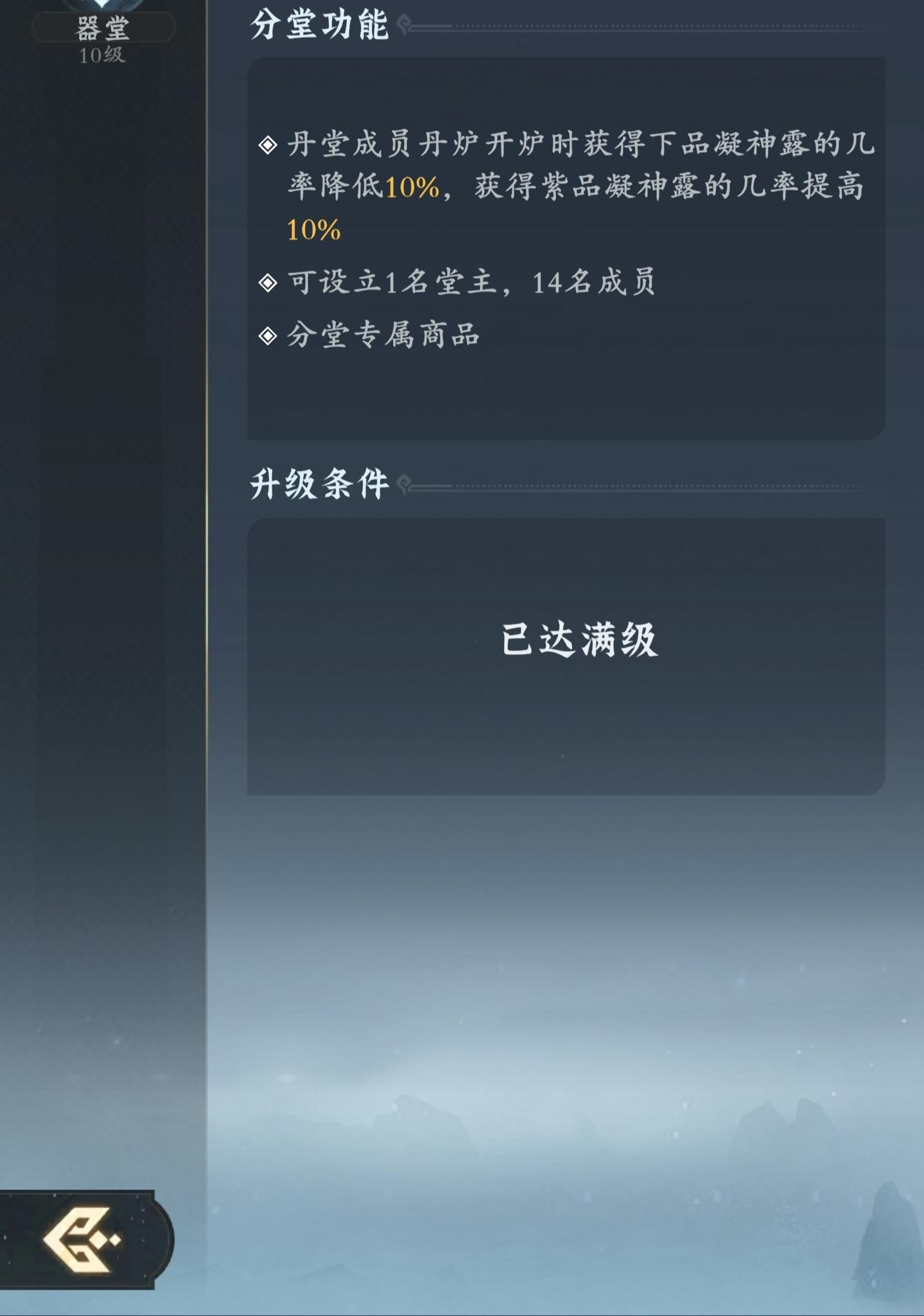 这位仙长请留步!我看你骨骼清奇有份工作介绍给你要不要?宗门玩法大焕新!本周即将上线【宗门分堂】玩法!宗门分堂玩法本周五更新后,【宗门分堂】玩法正式开启。无论你是热衷战斗的狂人,还是沉迷炼丹的丹师,亦或是寻宝探秘的行家,都能在宗门找到属于你的专属位置和丰厚俸禄!三大分堂,各显神通宗门等级达标后,管理层即可消耗物资建设或升级分堂。加入不同分堂,不仅能获得强力Buff,还能兑换专属稀有物品
