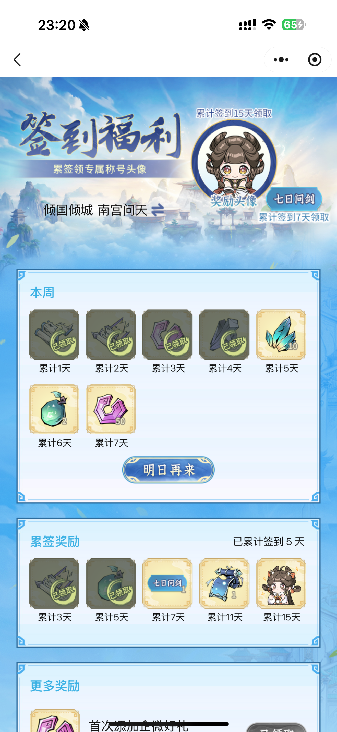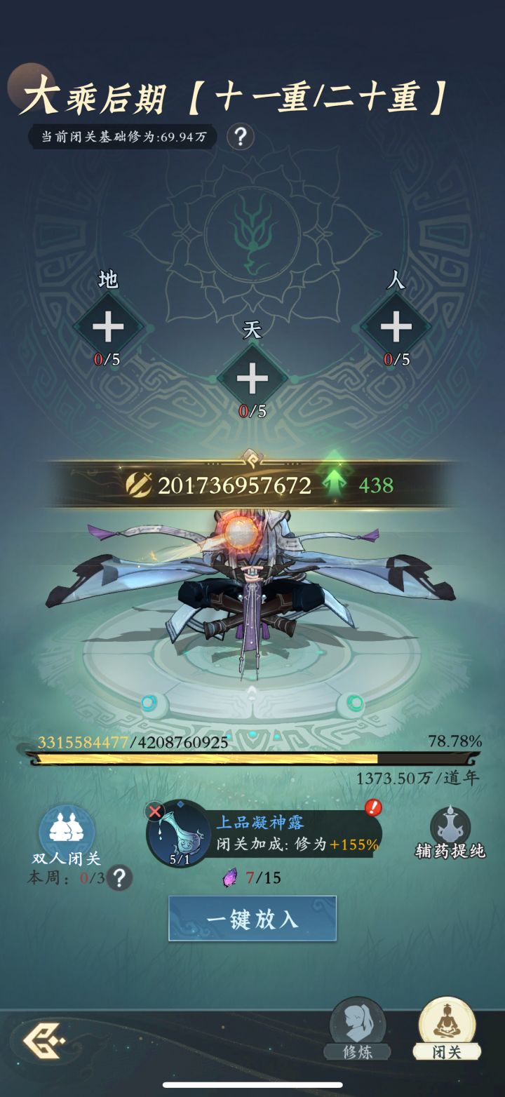 #问剑长生 时间:2月6日23点修为来到大乘后期11重78%,境界排名42,战力2017亿,玉元3.33万,签到第5天