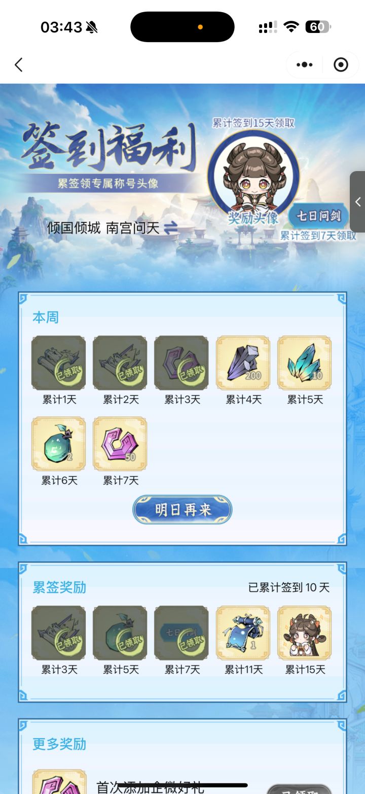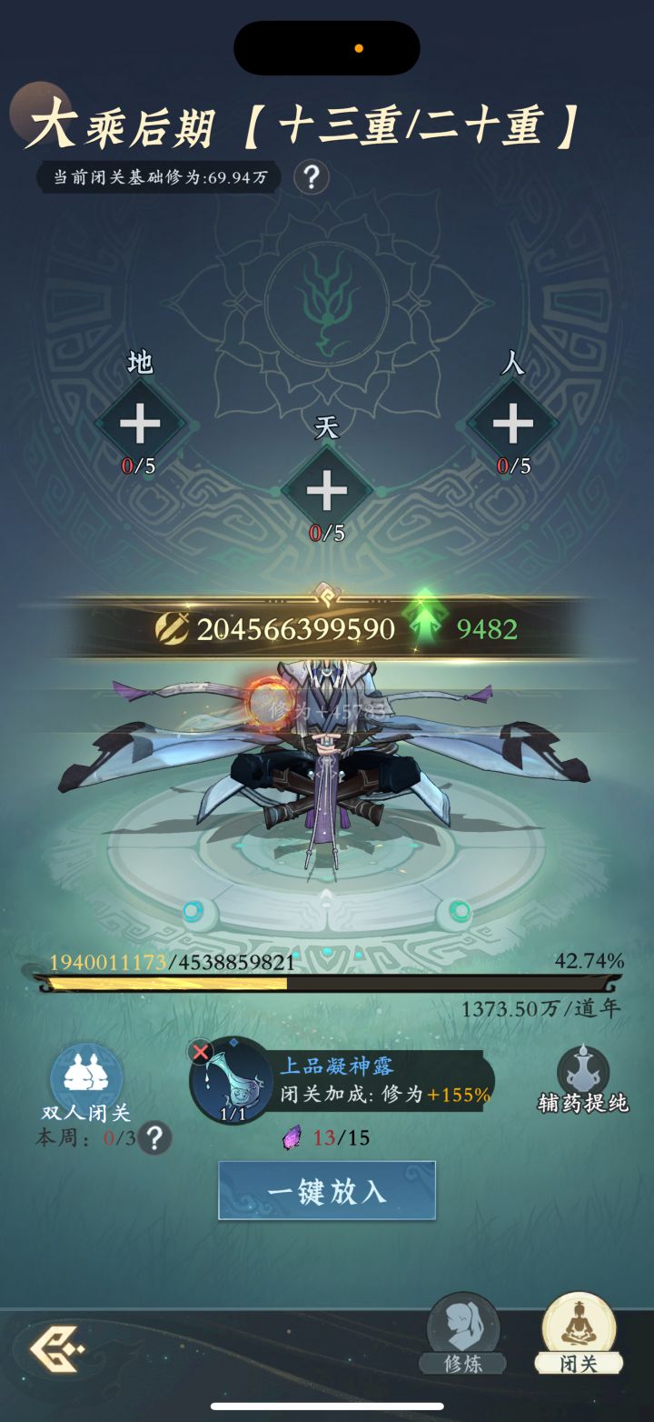 #问剑长生 时间:2月12日3点修为来到大乘后期13重42%,境界排名41,战力2045亿,玉元2.77万,签到第10天