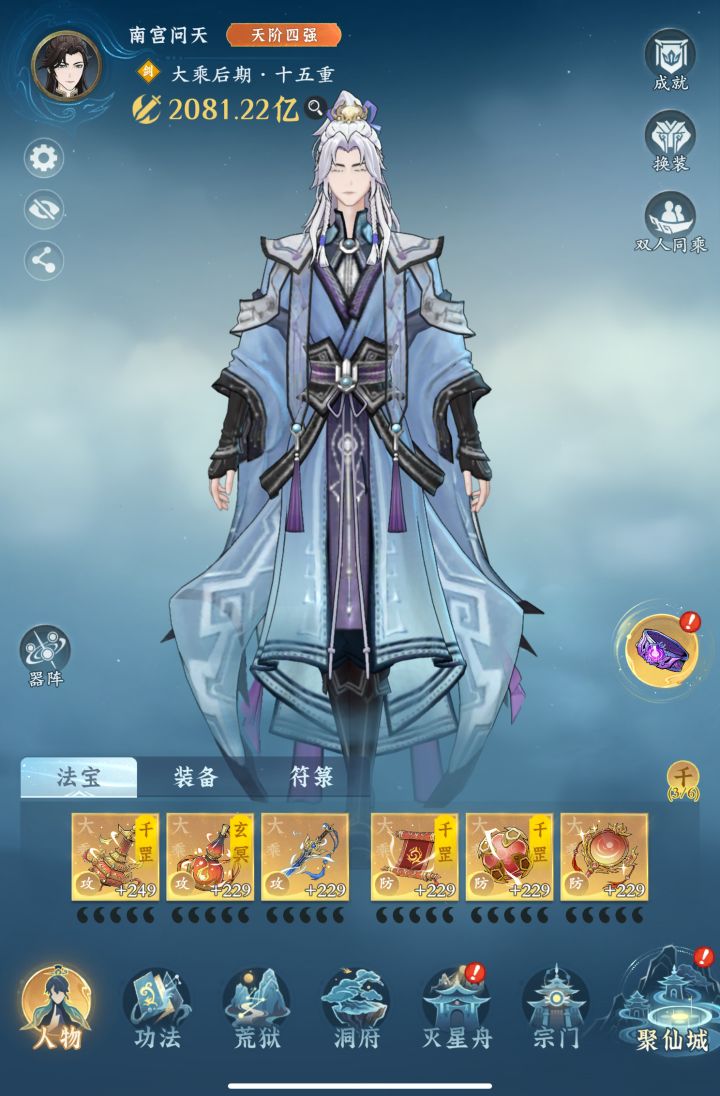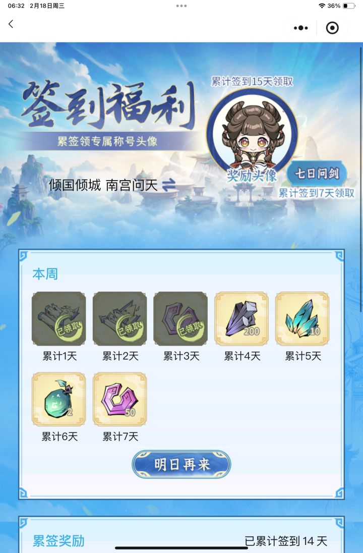 #问剑长生 时间:2月18日6点修为来到大乘后期15重21%,境界排名41,战力2081亿,玉元3.94万,签到第14天