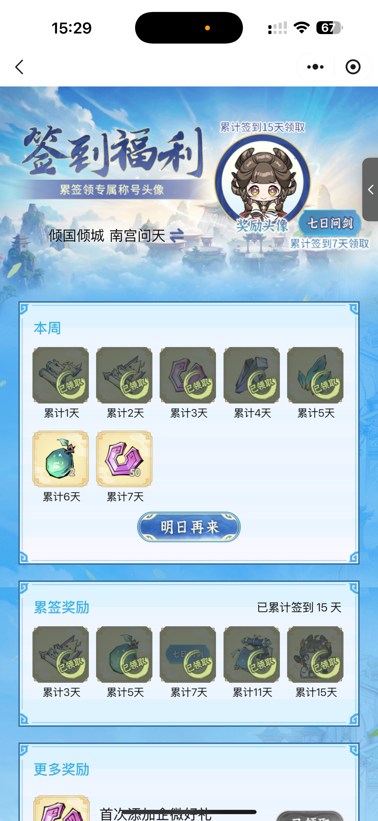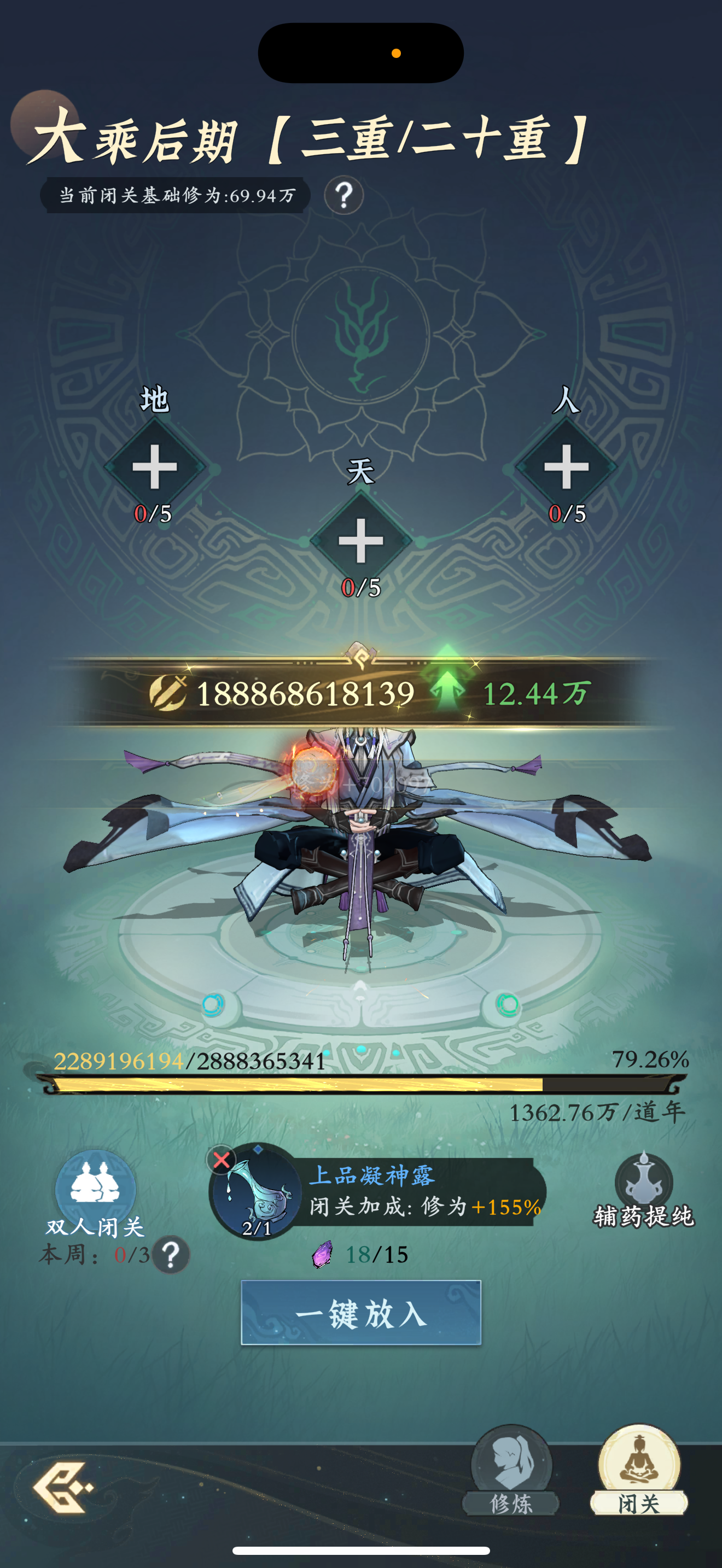 #问剑长生 时间:1月17日15点修为来到大乘后期3重79%,境界排名41,战力1888亿,玉元1.83万,签到第15天