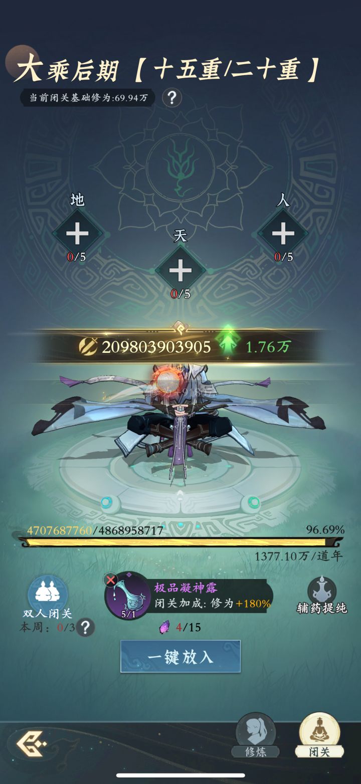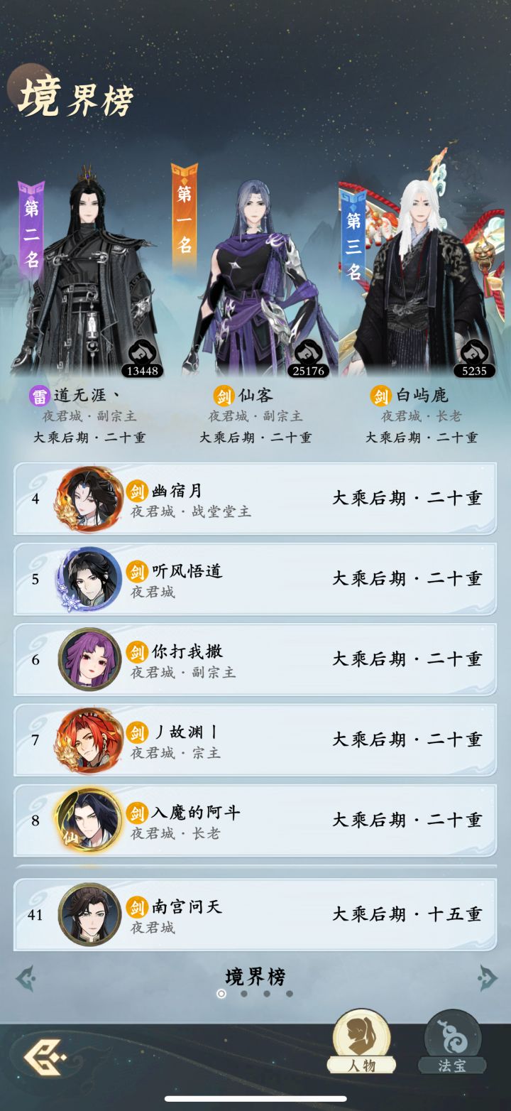 #问剑长生 时间:2月20日13点修为来到大乘后期15重96%,境界排名41,战力2098亿,玉元3.72万,签到第15天