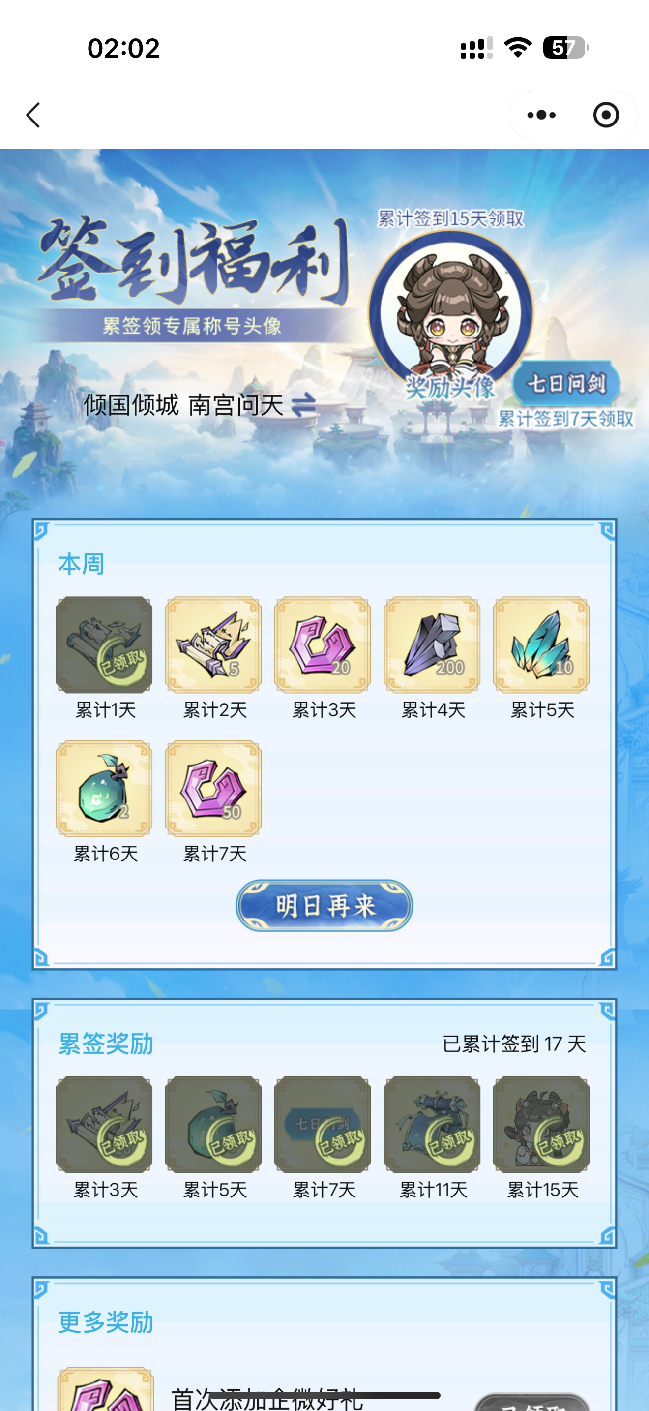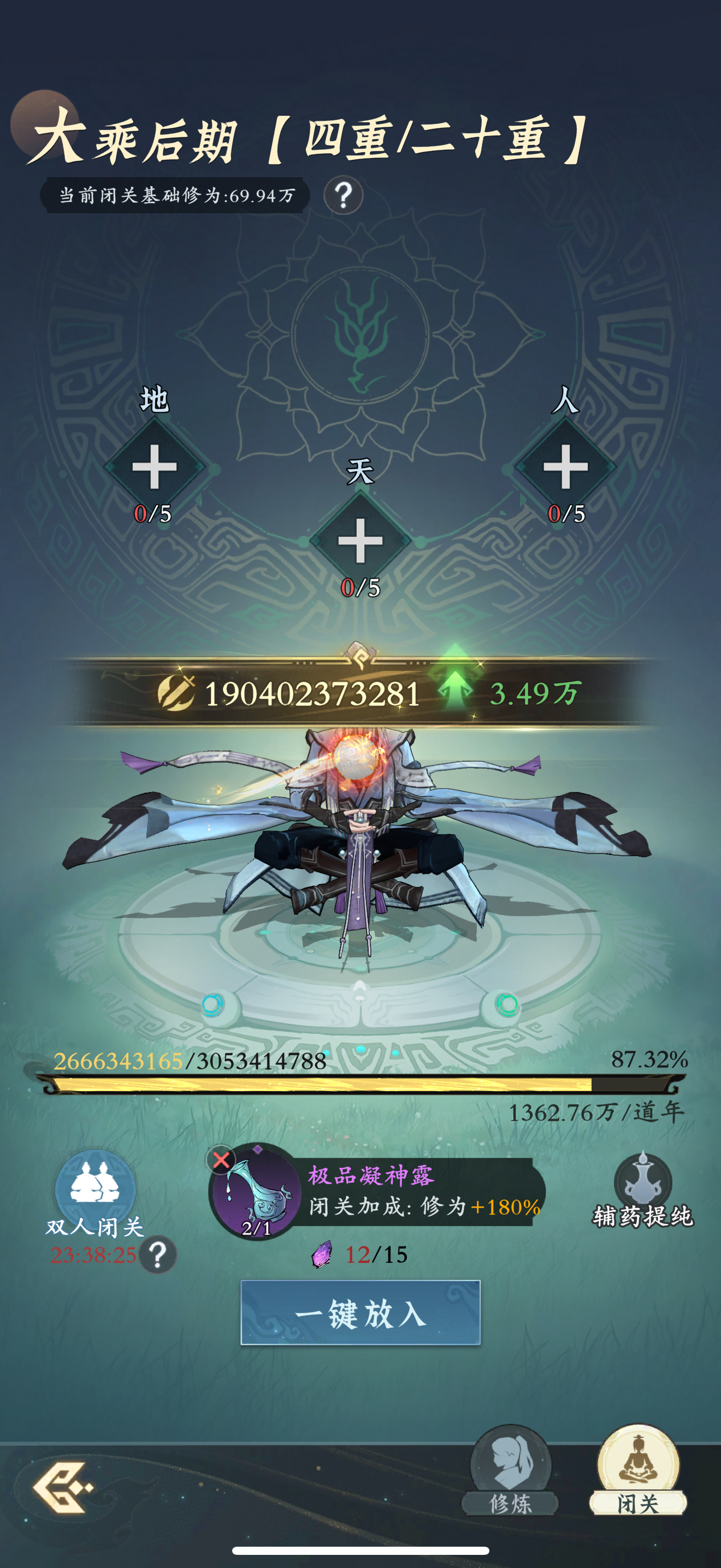 #问剑长生 时间:1月20日02点修为来到大乘后期4重87%,境界排名42,战力1904亿,玉元1.62万,签到第17天