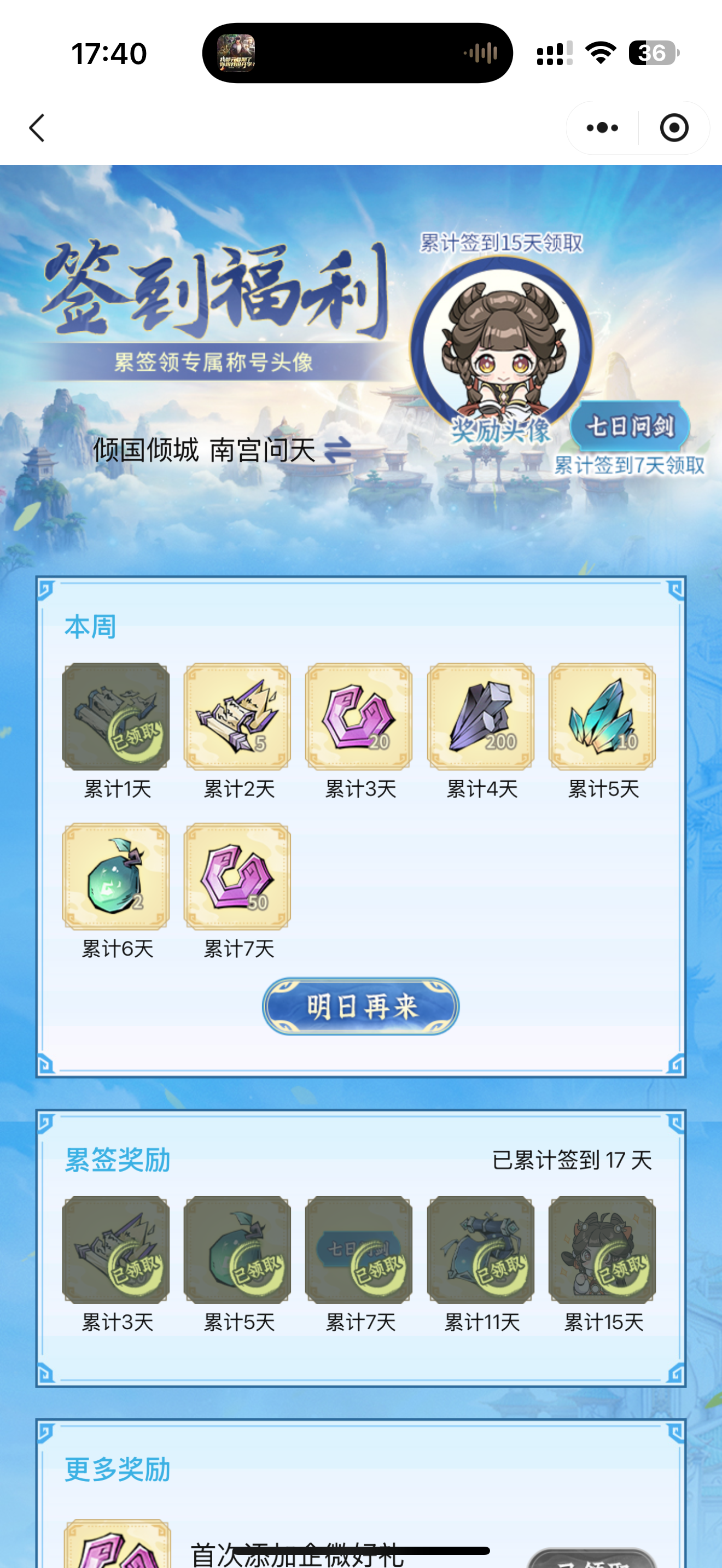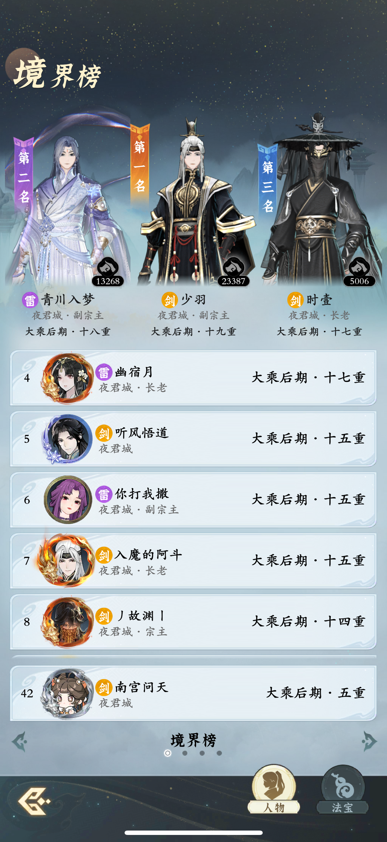 #问剑长生 时间:1月20日17点修为来到大乘后期5重21%,境界排名42,战力1913亿,玉元1.9万,签到第17天