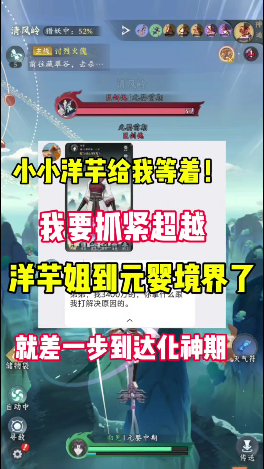 天塌了,洋芋姐居然到达了元婴期,3千万战力,我要抓紧达化神了#问剑长生 #御剑修仙来问剑 #修仙 #游戏日常 #发现好游戏