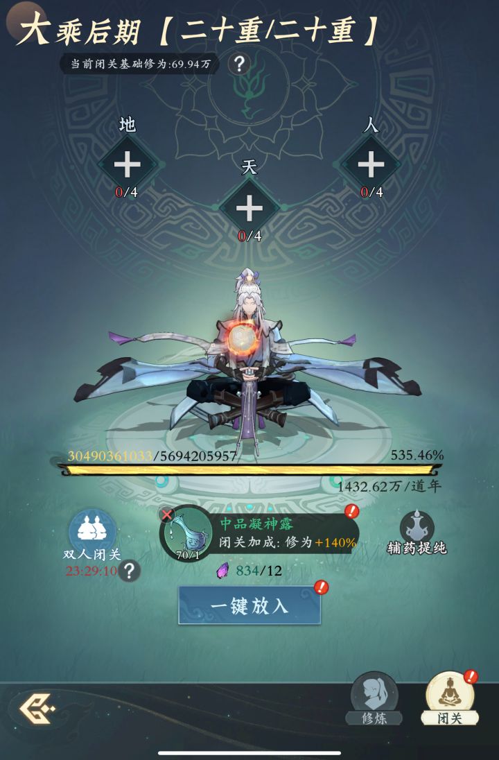 说白了,就是有限的资源最大化养二维,攻击暴击,不要虚的!还有一点学会看面板!!游戏的底层逻辑就是数值叠加加招式的配对!么了就这样,飞升14天,我开始存东西了!基本我人界理论么问题,就看灵界了,玩的那时候,我在更新!无聊随便玩玩,你要想打死4不像氪度几百千把块的玩家!这套能打!类推后面的