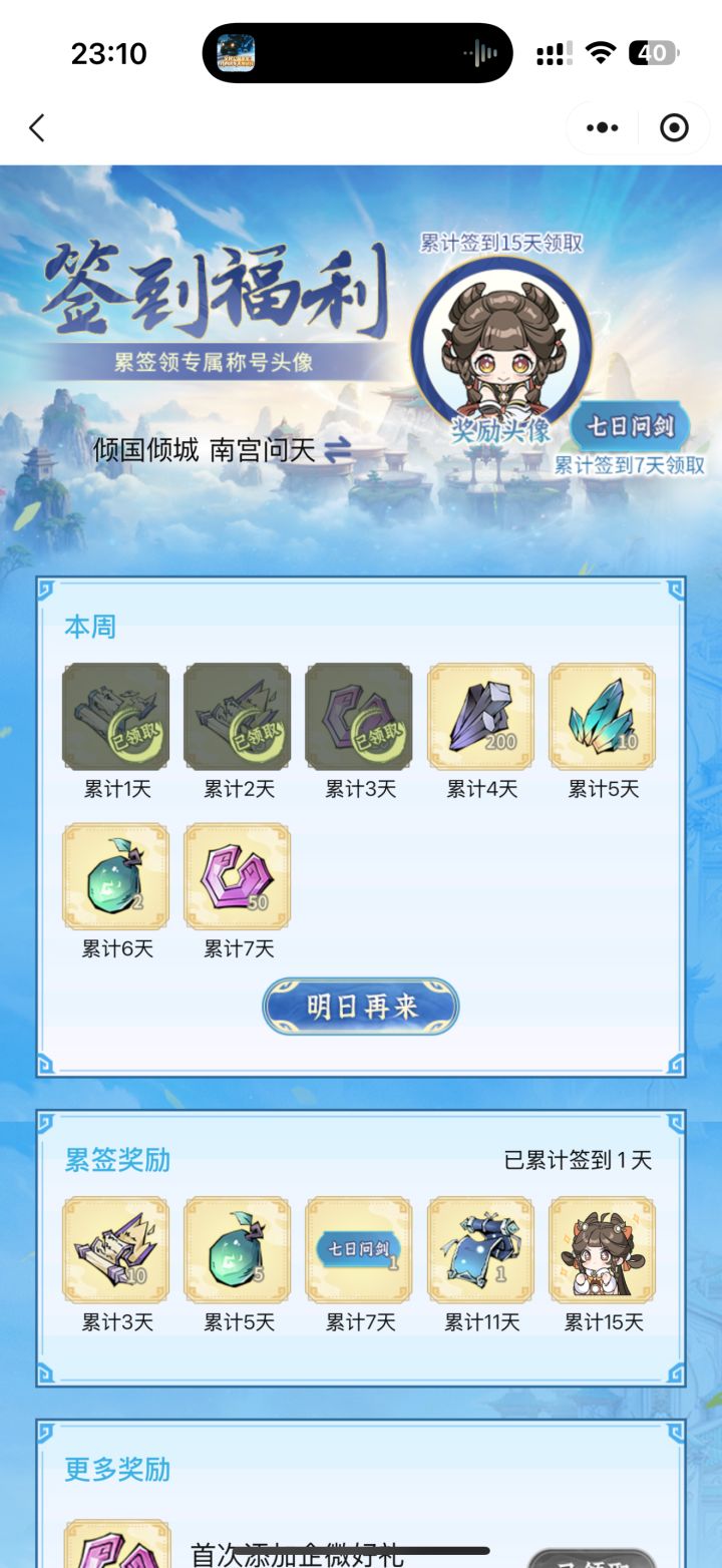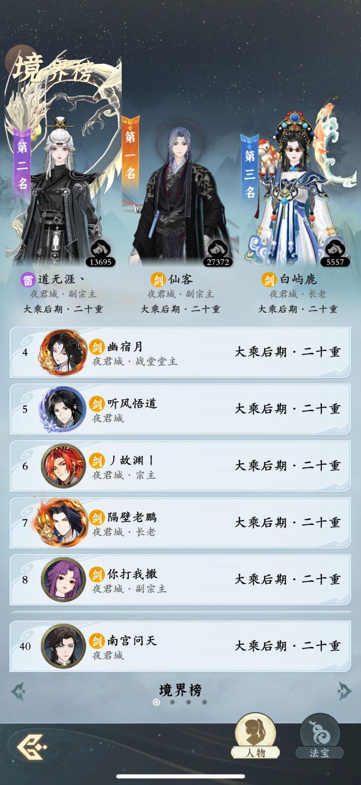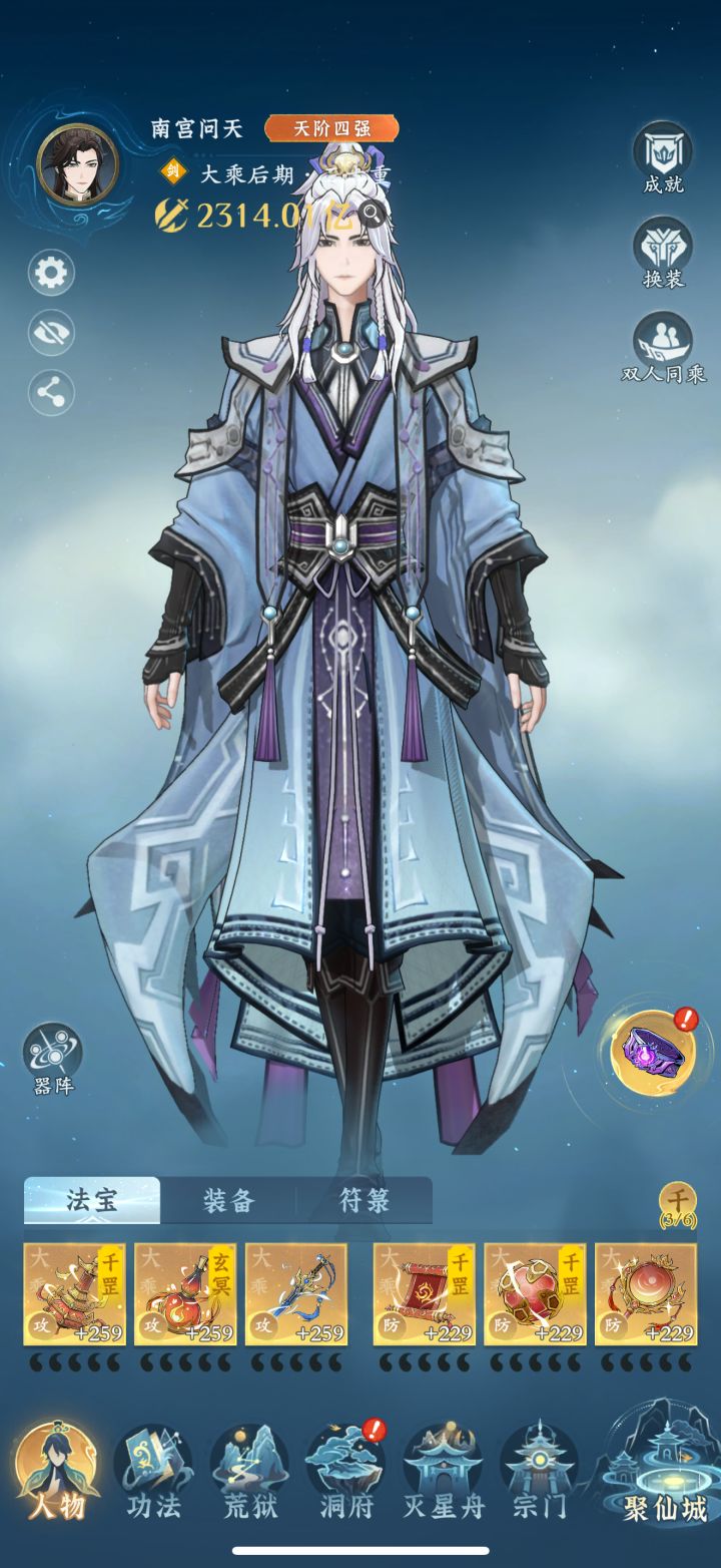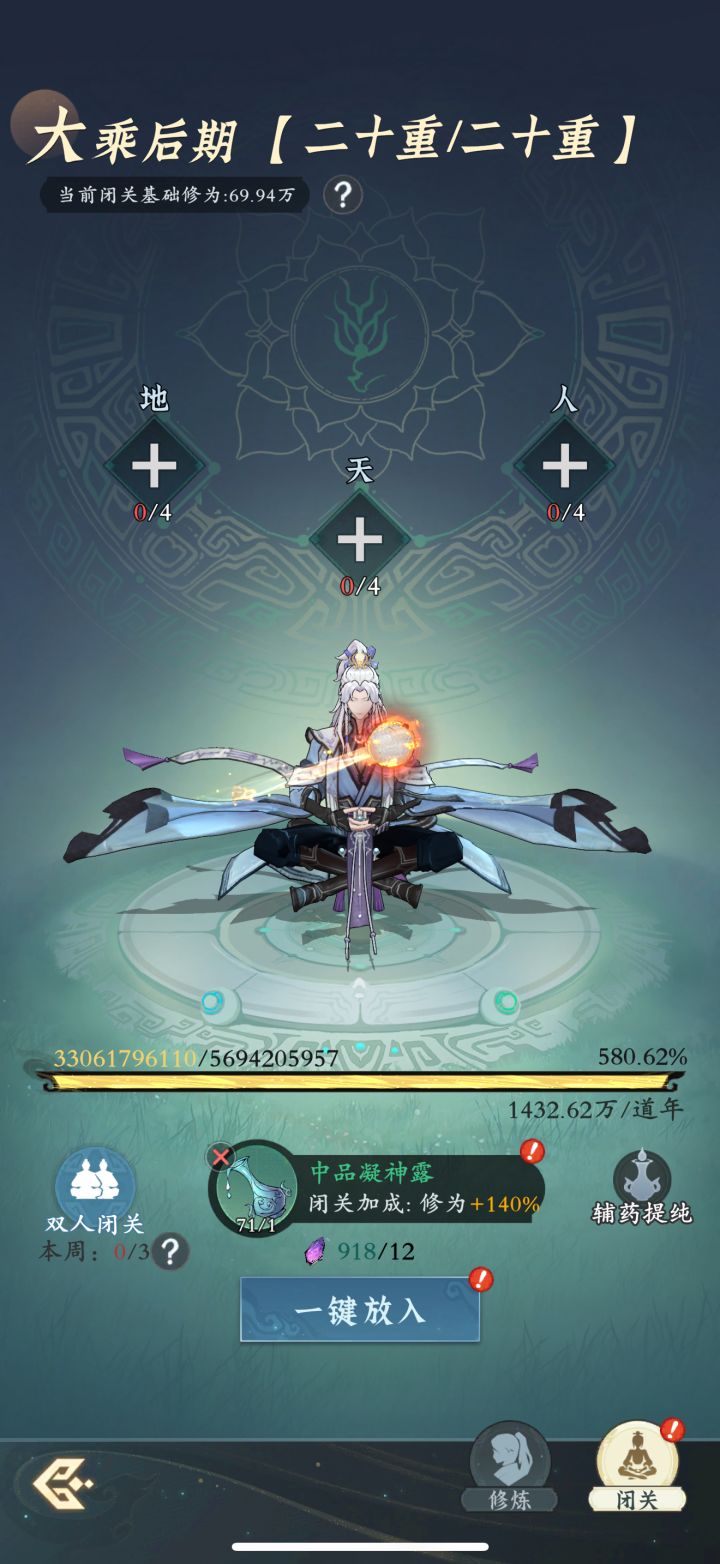 #问剑长生 时间:4月1日23点修为来到大乘后期20重580%,境界排名40,战力2314亿,玉元5.71万,签到第1天