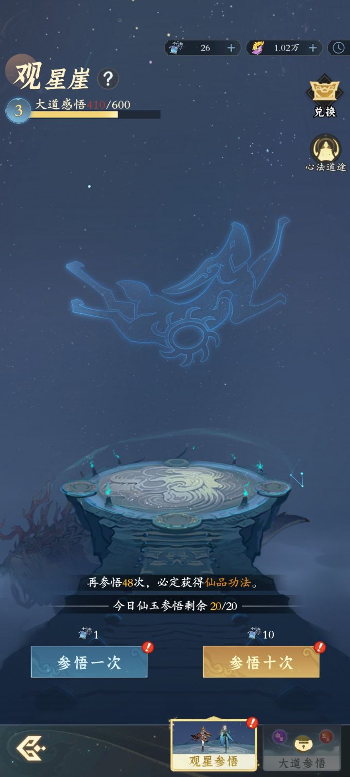飞升还有14天,第一次玩,看了大量攻略,自己综合的,理论来说飞升神通会心250%,神通加伤20%剑系24%保守估计!掠影已经天一,后续慢慢补,心法推养不能回退,所以看你需要的词条推养,不想要的词条别推了,留着,其他的推二加30精法点就行,就着飞升用!抽的不太好,目前玩存宗门贡献个论剑币了,诸天还有一万么用,杂七杂八的,我是放弃了很多资源故意降低自己资源获取!资源我是主养的二维,攻击,会心就么了,灵