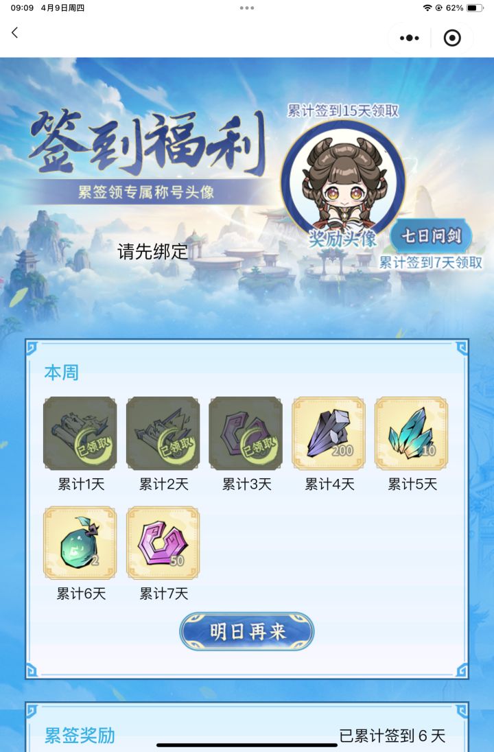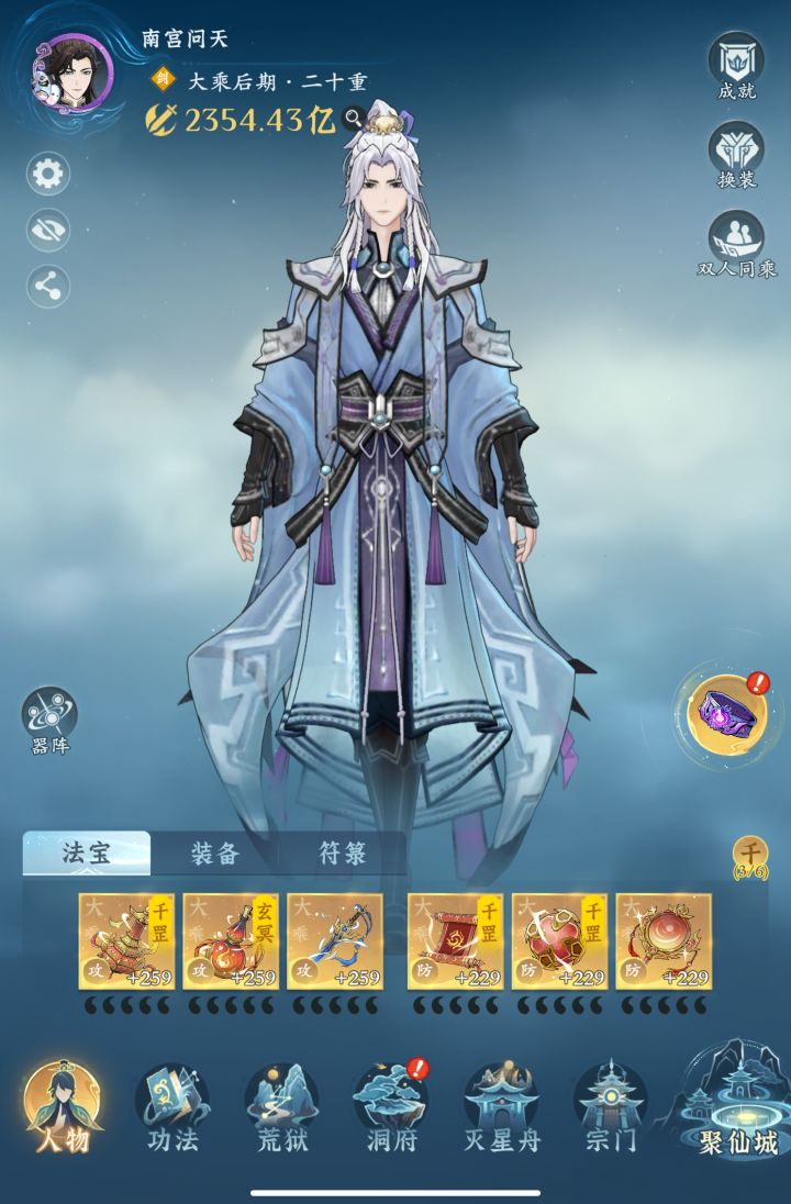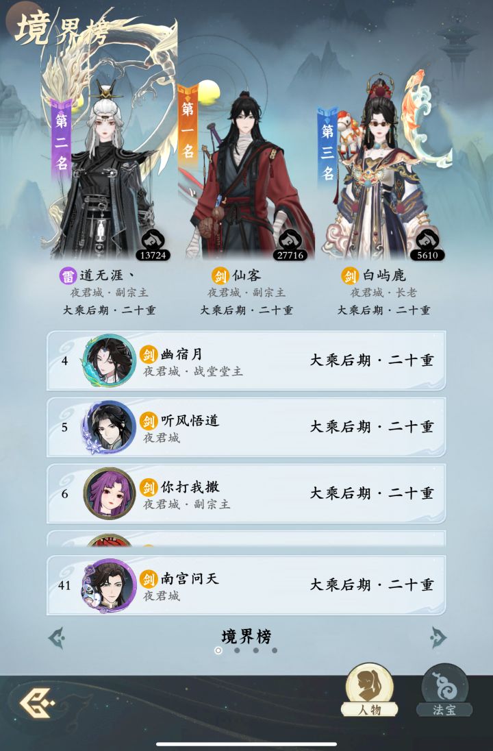 #问剑长生 时间:4月9日9点修为来到大乘后期20重749%,境界排名41,战力2354亿,玉元6.47万,签到第6天