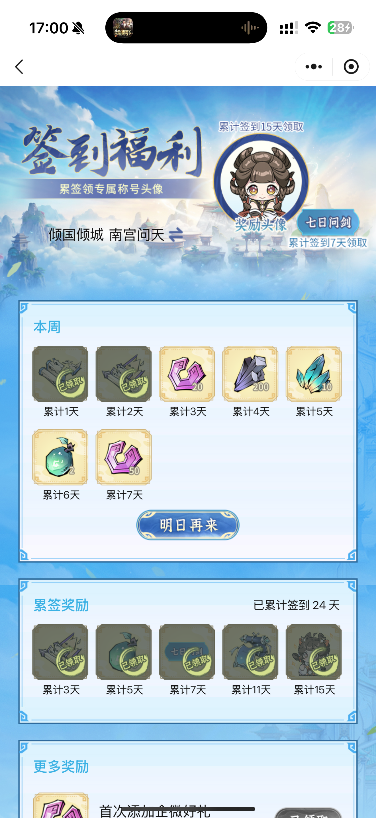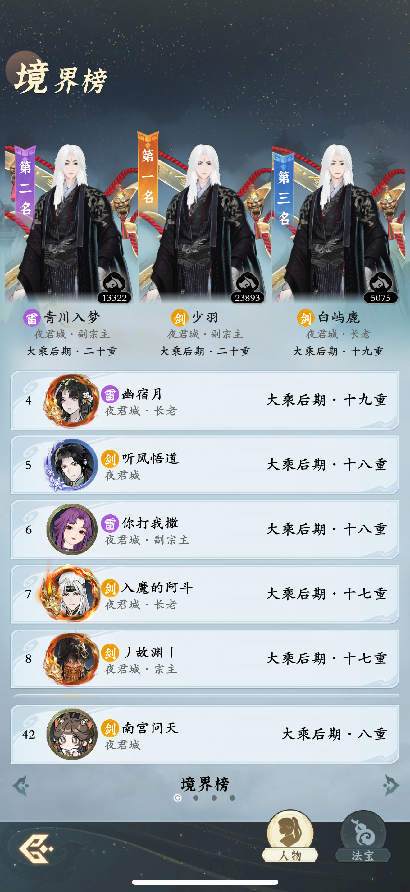 #问剑长生 时间:1月27日17点修为来到大乘后期8重52%,境界排名42,战力1961亿,玉元2.45万,签到第24天