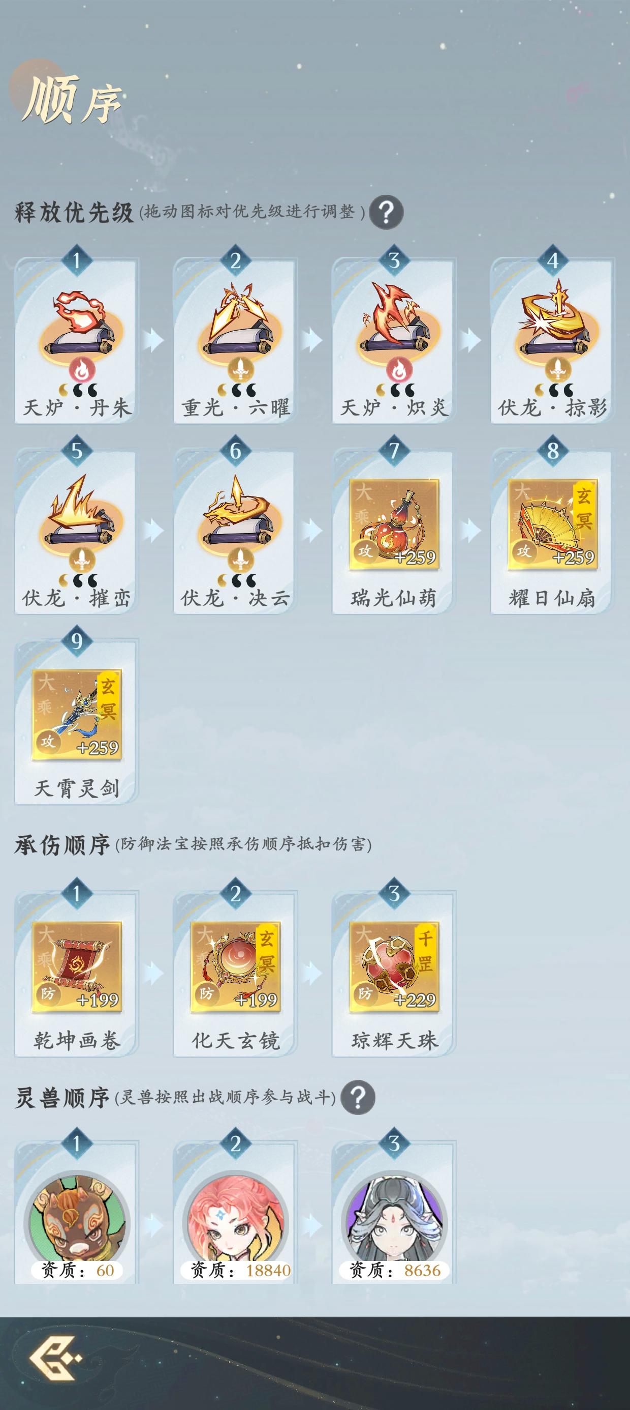 神通排序依次为1-6号位置,红色字体标注为会心加成神通,橙色标记表格为核心输出神通,练气到化神阶段大致1个月时间,化神到返虚大致1个月时间,一共2个月平民玩家,应该可以做出两个天阶神通掠影,摧峦。为剑修神通核心中的核心神通无脑投入就行了。顺带做做火修神通炽炎,为后面返虚打下神通基础