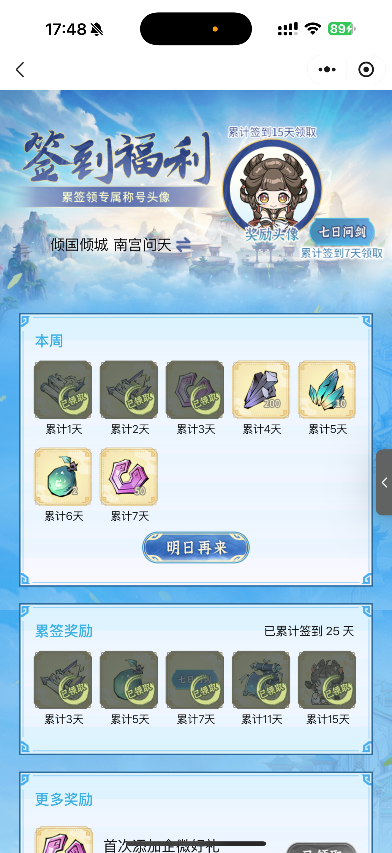 #问剑长生 时间:1月28日17点修为来到大乘后期8重89%,境界排名42,战力1967亿,玉元2.45万,签到第25天