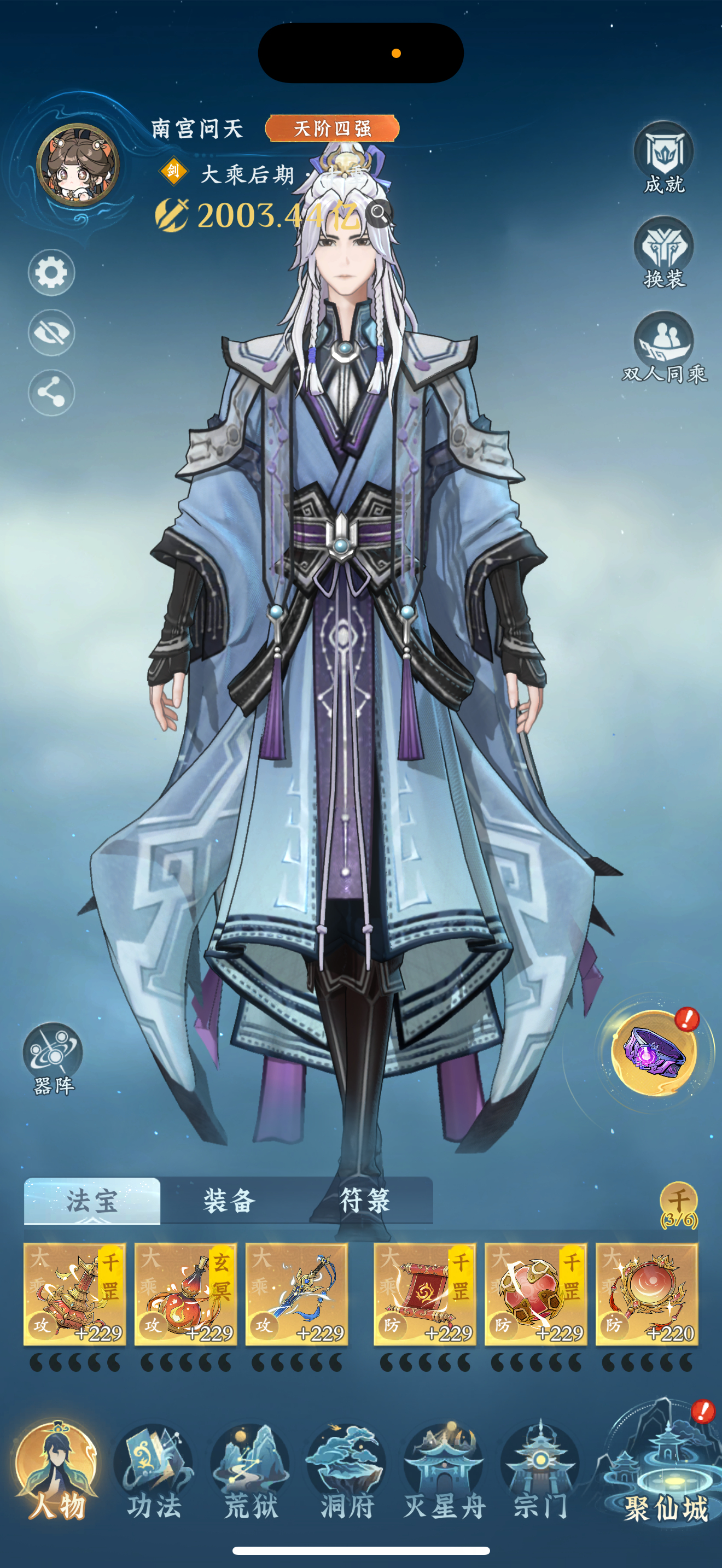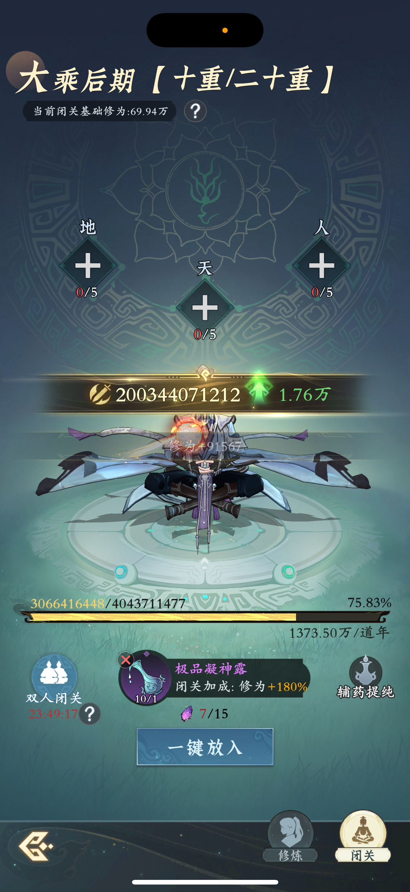 #问剑长生 时间:2月3日23点修为来到大乘后期10重75%,境界排名42,战力2003亿,玉元3.20万,签到第3天