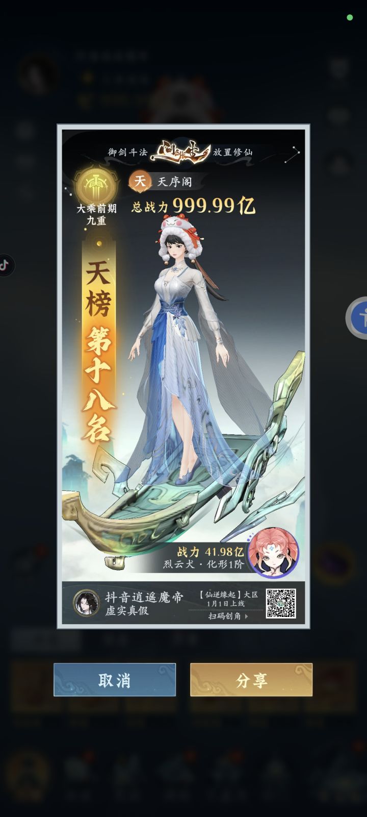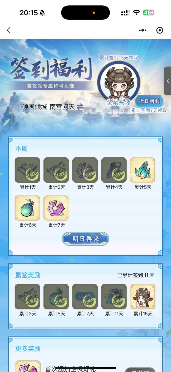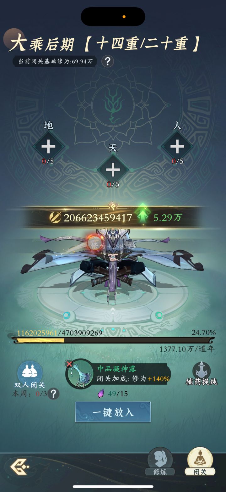 #问剑长生 时间:2月14日20点修为来到大乘后期14重24%,境界排名42,战力2066亿,玉元2.71万,签到第11天