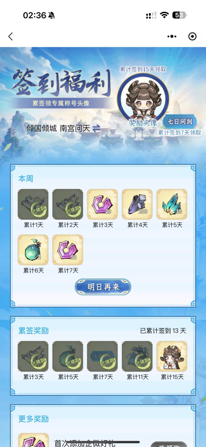 #勇者联盟 时间:2月17日2点修为来到大乘后期14重87%,境界排名41,战力2076亿,玉元3.67万,签到第13天