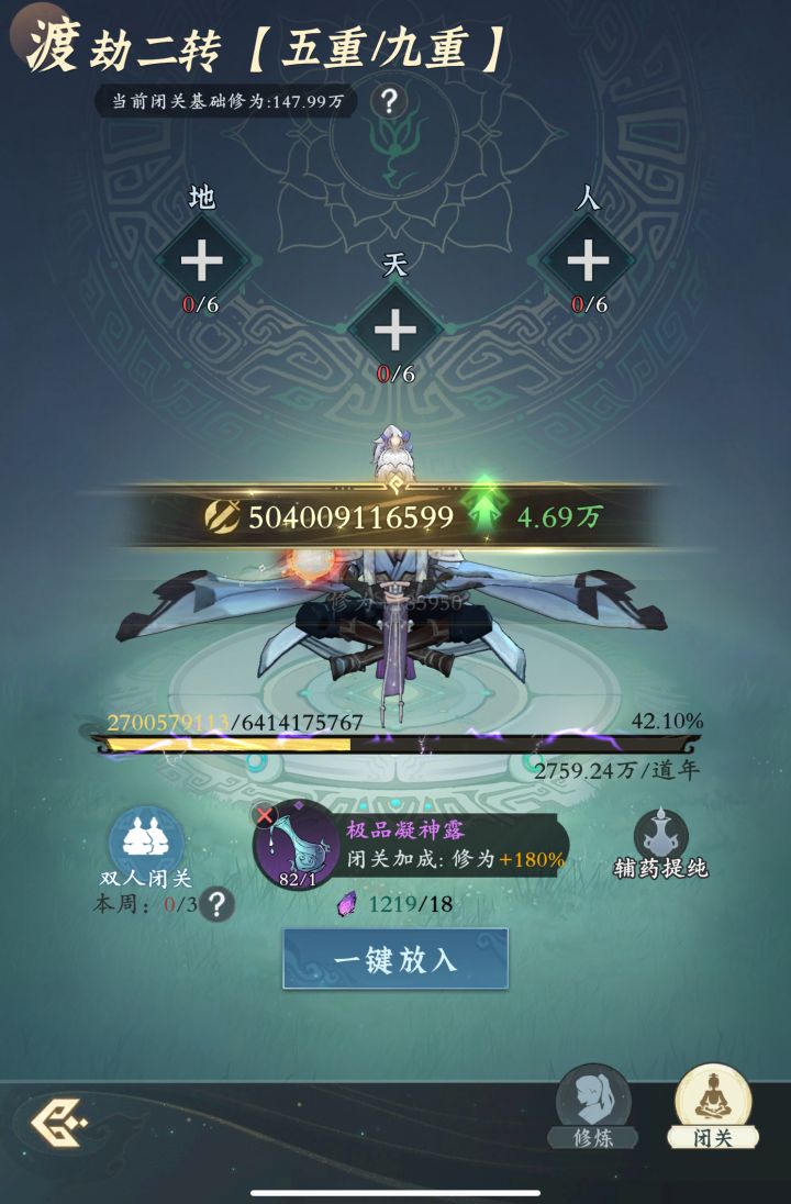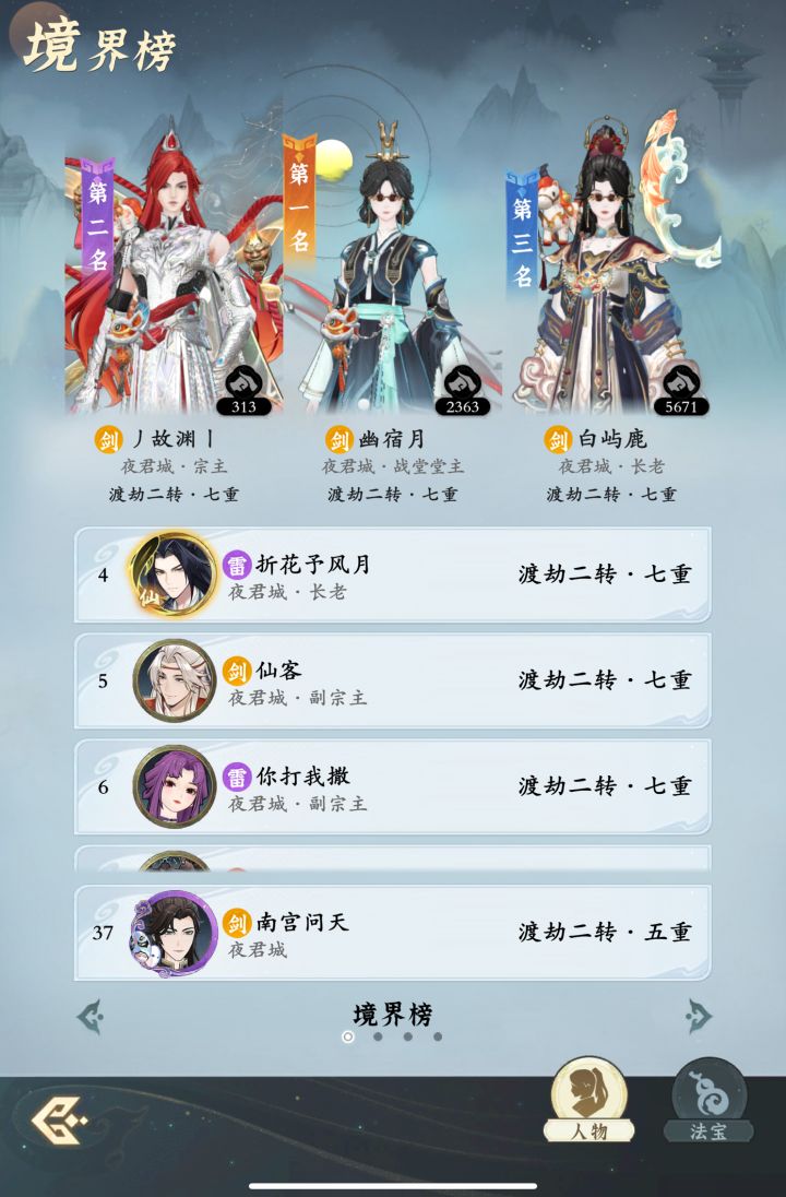 #问剑长生 时间:4月26日9点修为来到渡劫二转5重40%,境界排名37,战力5040亿,玉元7.7万,签到第22天