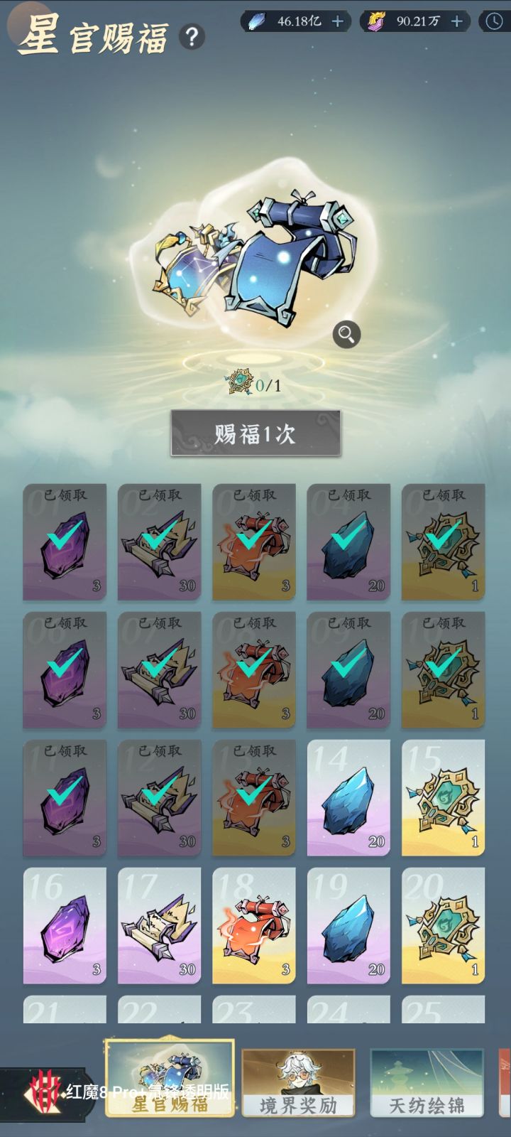#问剑长生 时间:2月18日6点修为来到大乘后期15重21%,境界排名41,战力2081亿,玉元3.94万,签到第14天