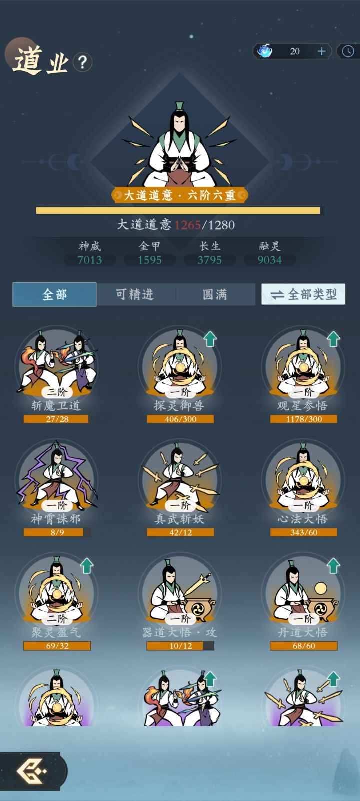 飞升还有14天,第一次玩,看了大量攻略,自己综合的,理论来说飞升神通会心240%,神通加伤20%剑系22%,摧岙天三差2个本体!掠影已经天一,后续慢慢补,抽的不太好,目前玩存宗门贡献个论剑币了,诸天还有一万么用,杂七杂八的,我是放弃了很多资源故意降低自己资源获取!不信就随你11198的书生,以前叫狂徒!资源我是主养的二维,攻击,会心就么了,灵压,灵兽,领域全放弃了,资源倾斜0氪极限二维,神通加伤,