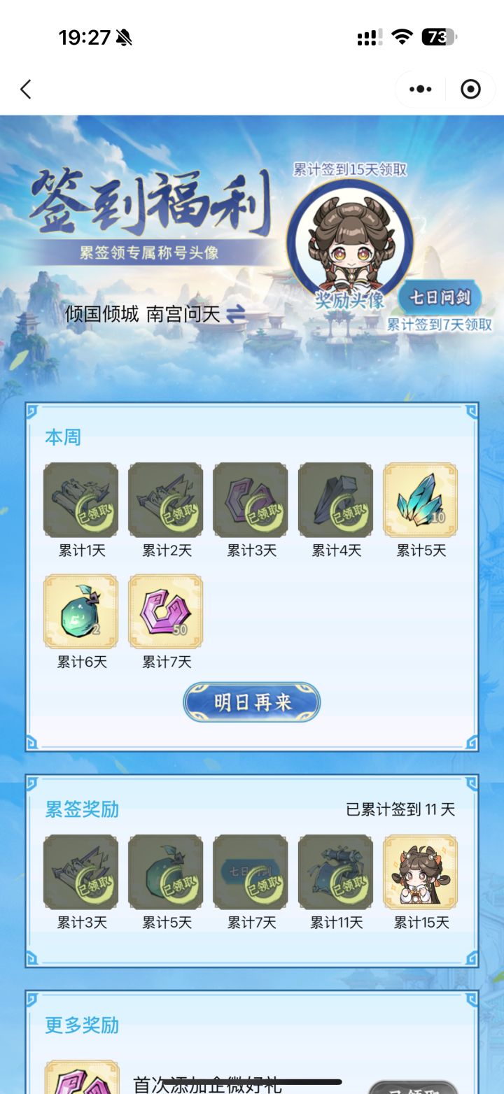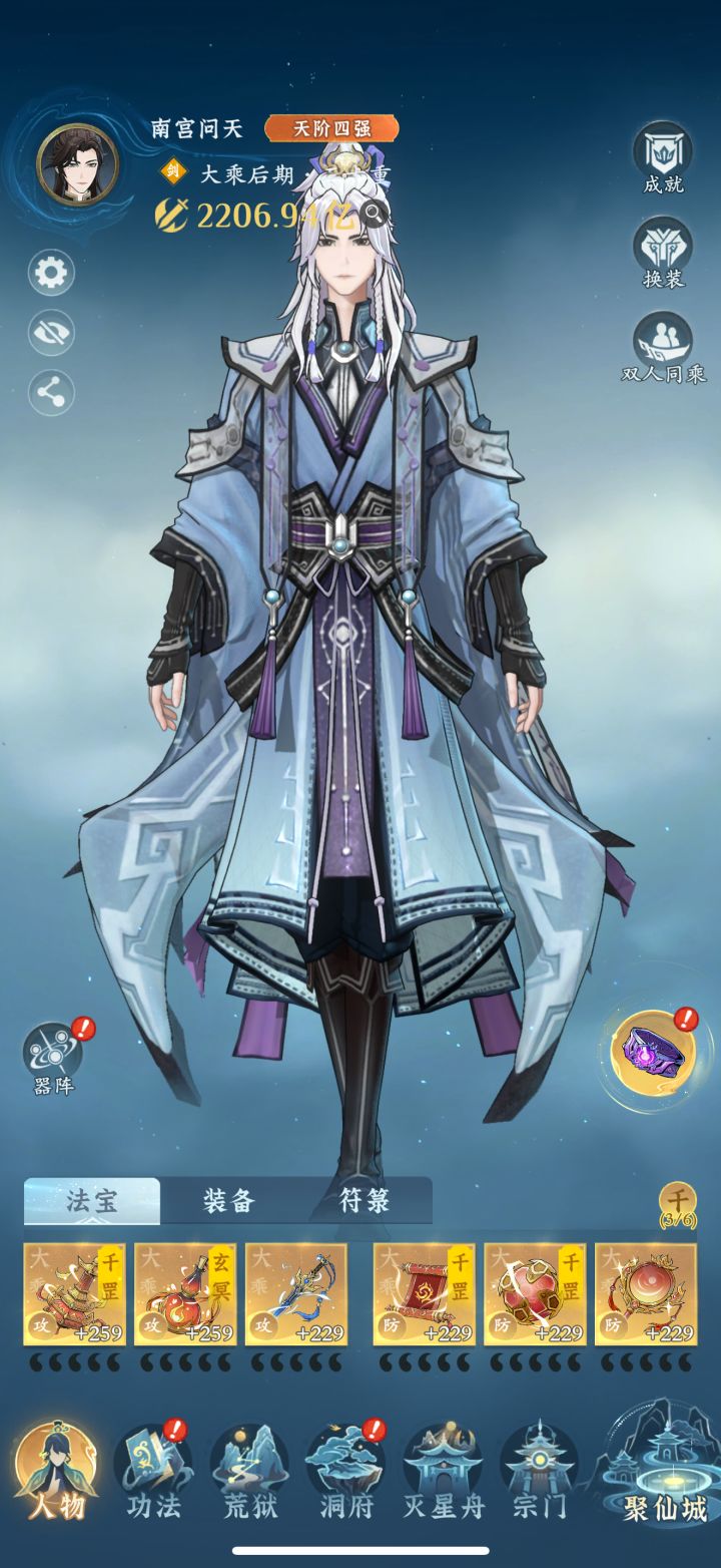 #问剑长生 时间:3月10日19点修为来到大乘后期20重124%,境界排名40,战力2207亿,玉元3.7万,签到第11天