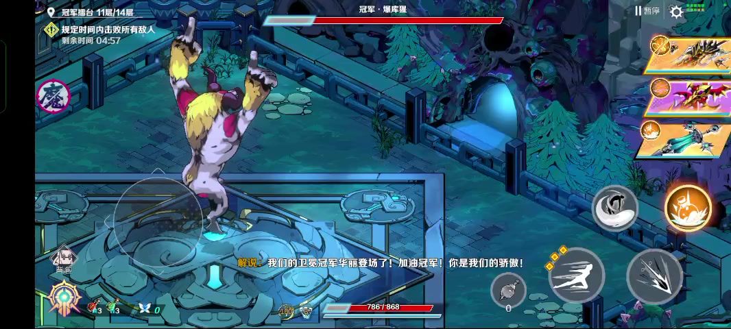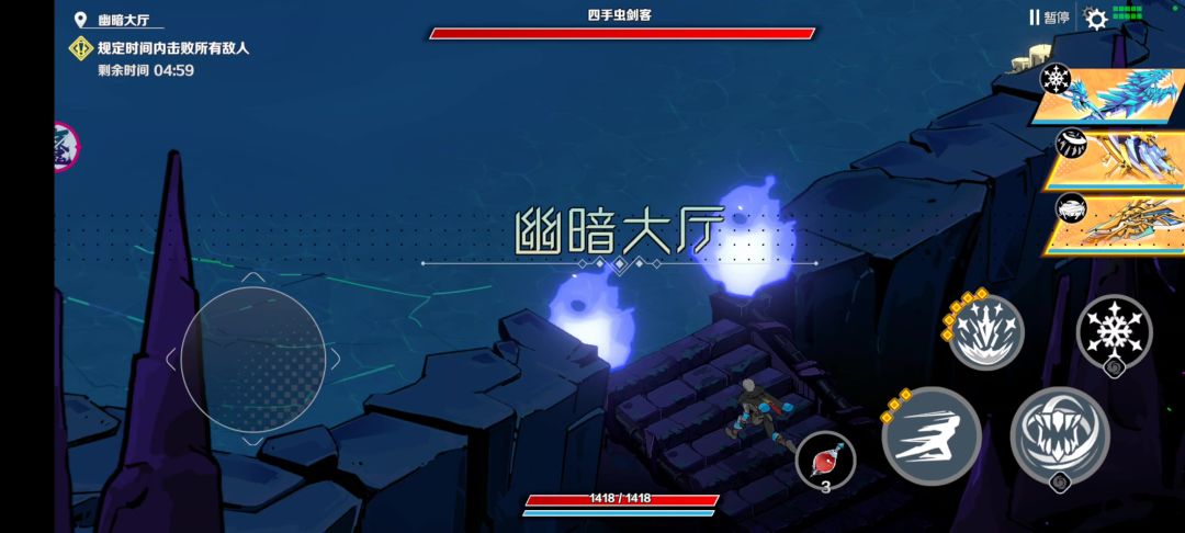山洞推荐引雷,由于双引雷被砍死所以并没有核心线能力,所以可以随便带点,这一章已经可以保底格雷恩或者用绯石之剑换一个SSR,不想抽格雷恩可以换瞬或者狼哀,把SSR等级升满攻击力不会缺 在螳螂原地蓄力出盾的时候打断盾会直接破平衡,盾变红的时候有免伤不用打,近战需要绕到BOSS脚底没光圈的地方输出不然会被弹开,BOSS上天就可以跑的远远的看是出哪招 猩猩就是宁愿提前闪也不要被打,就算提前闪到背后猩猩王八