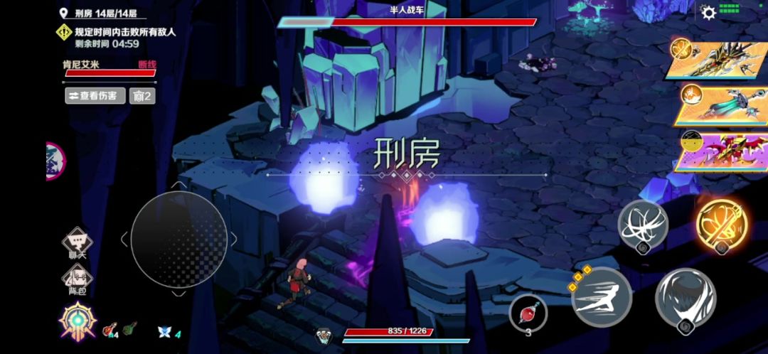 除了关底半人战车很肉其它都好打 四手虫白给 猩猩最好控血量在失衡的时候打完一阶段,这样二阶段开始直接控住防止猩猩乱闪 半人战车移速快范围大,还只有一个方向能打,其它地方减伤基本打不动,只能慢慢找机会磨(努力中,已超时两次)