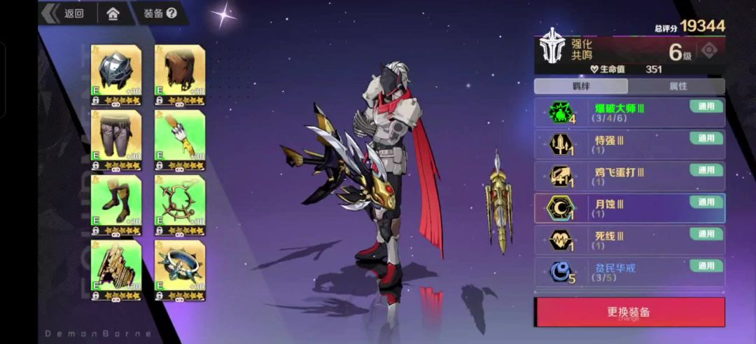 #刃境创作征集令 一次不经意的副本,我得到了一件金色装备(全能头盔)。 于是我想,能不能基于全能头的特性组建一套将攻击力提升到极致的套装,不多废话,玩的就是真实。初步思考是八件金色装备(金色装备自带一个羁绊),每一件装备两个副羁绊,如果组成全2副羁绊,也是八个。一共16个羁绊,但是,我怎么可能满足于这小小的16%的加成。刃镜游戏中攻击力又是重中之重。游戏中副羁绊有加成攻击力有:贵族+近战肉搏。所