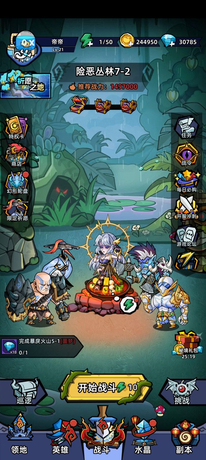 积分用的差不多了,开荒冲刺体验不错,新手起手建议时光+巨魔+泰坦,装备刷满最高能用的,符石缓冲+抵抗必备,果实有啥都能用,后面再考虑ss英雄 史诗符石 高级幻形之类的,这样卡关不会太严重