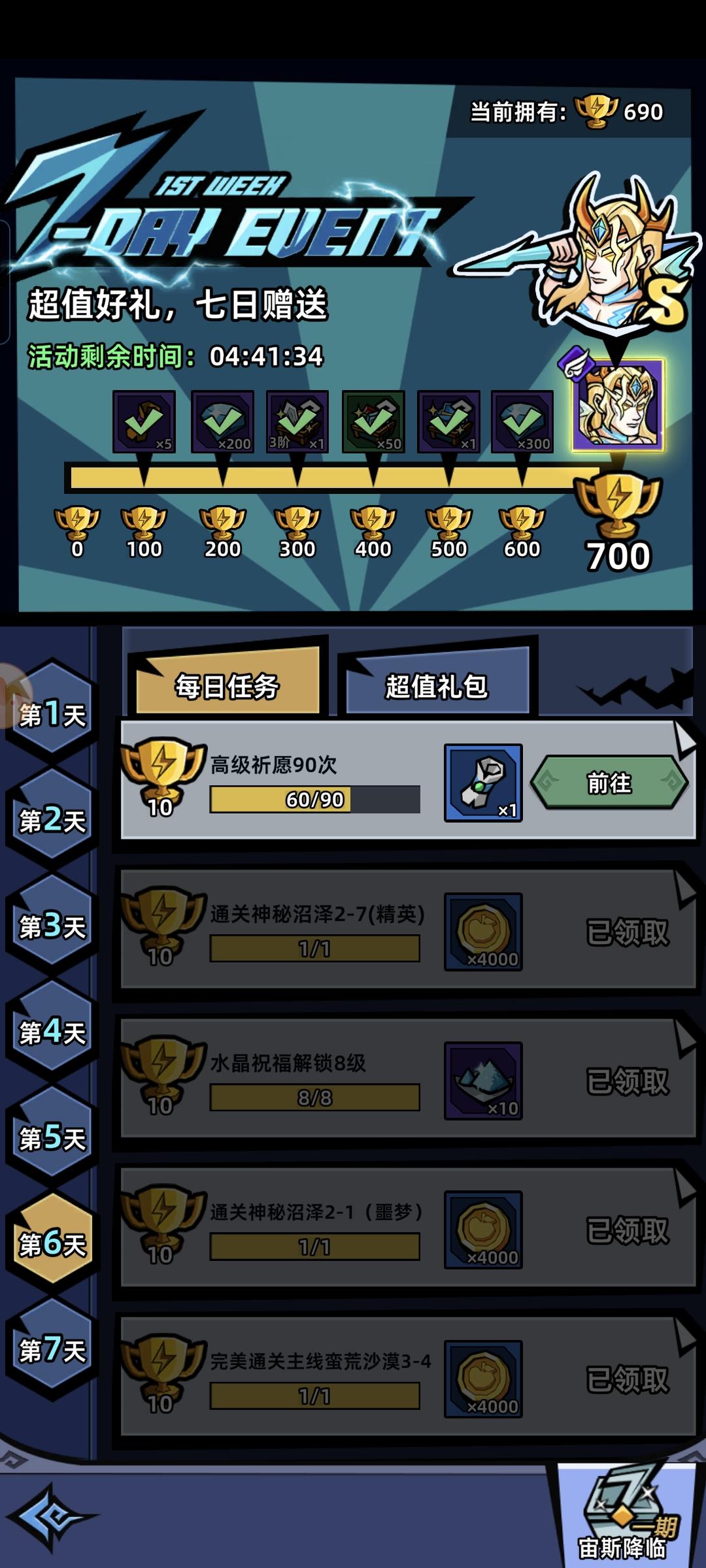 请问这个7天任务,你是认真的吗?7天高级祈愿90次?贵游戏氪金7天都买不到90抽高级祈愿的道具,因为7天获取渠道少到爆。纯纯恶心人,690/700,就差这一个完不成