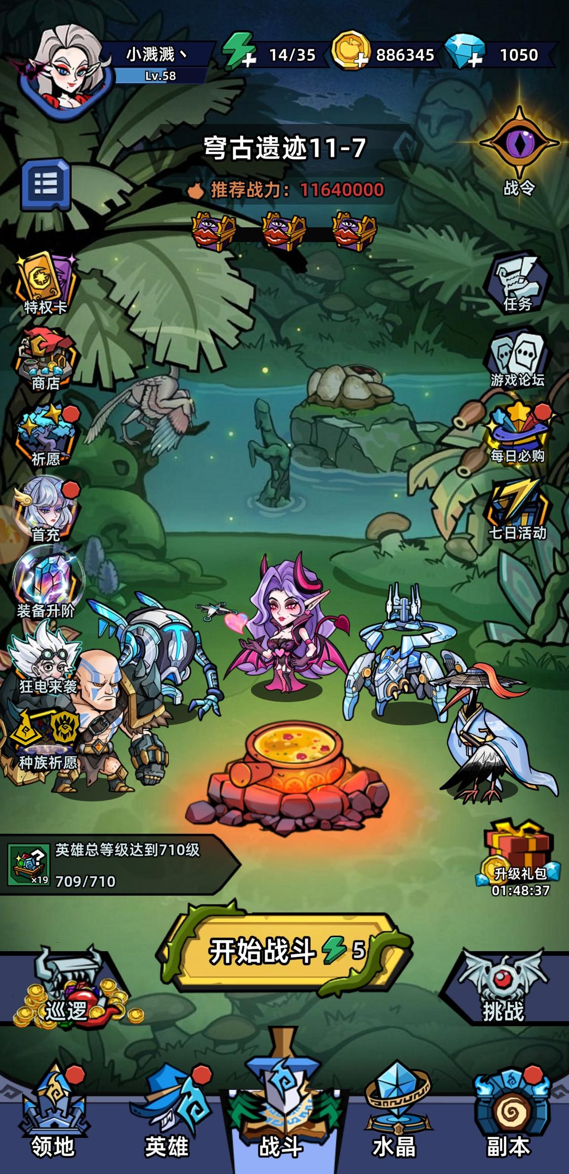 玩了半个多月,就充了个免广告,现在就是每天收菜了。。。。等战力上去推关
