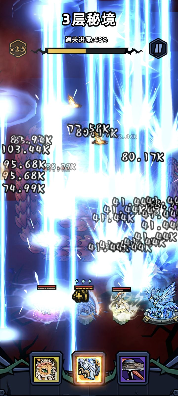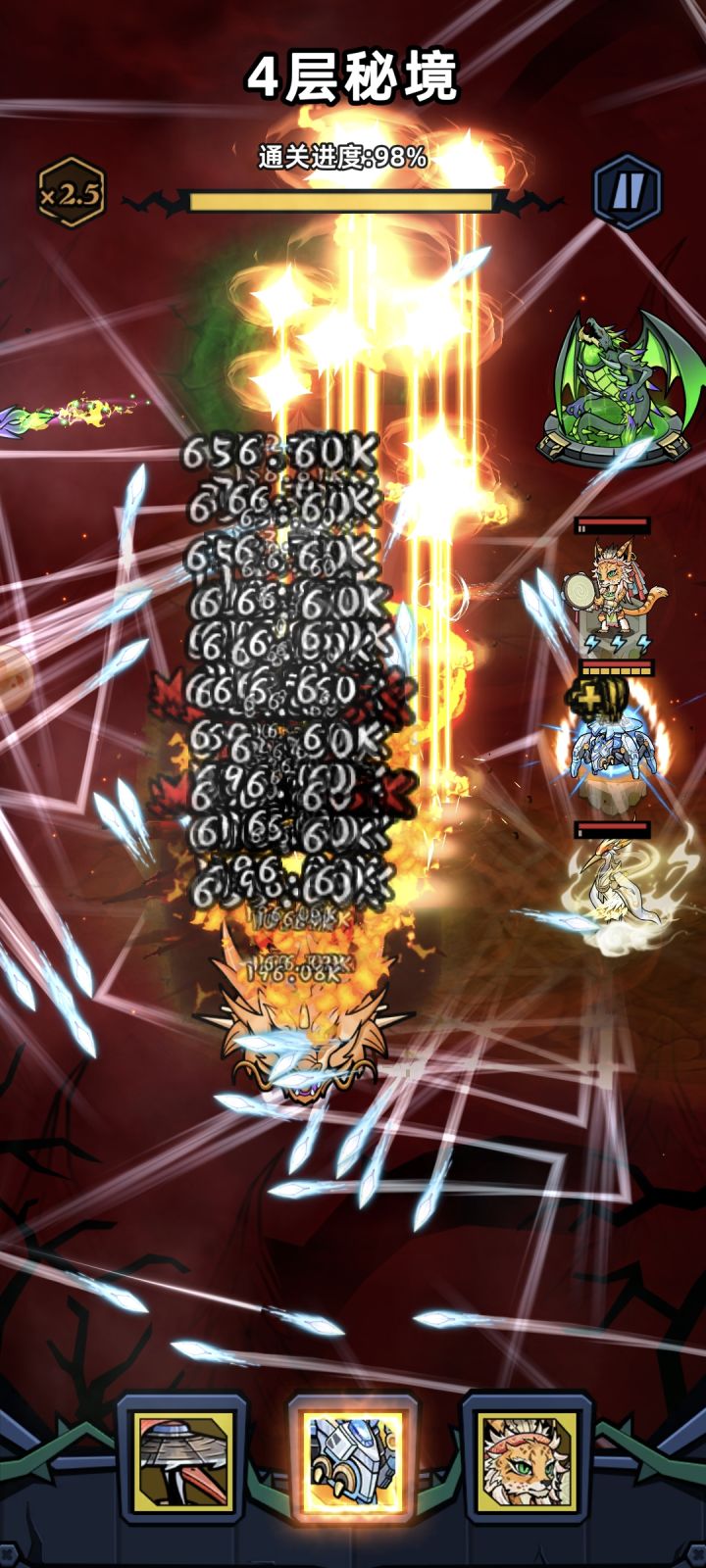 范围,分裂果实配合冰果实,人族冰雪法师,机械光之子,神族吸血蝙蝠,兽族狐狸辅助,运气好刷出来好果实也是能组合出清屏的华丽技能