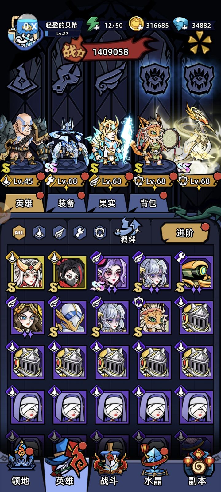 积分用的差不多了,开荒冲刺体验不错,新手起手建议时光+巨魔+泰坦,装备刷满最高能用的,符石缓冲+抵抗必备,果实有啥都能用,后面再考虑ss英雄 史诗符石 高级幻形之类的,这样卡关不会太严重