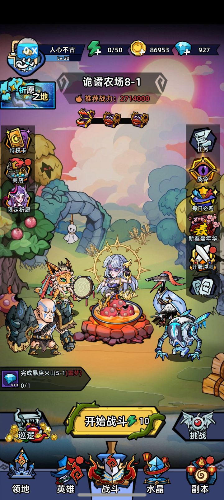 攒了一堆体力,懒得刷图,打一个图十几分钟,谁受得了。前面刷过的图也不出个扫荡。 还有这种穿透攻击带控制的boss怎么打哦,攻击一次冻住我全部角色,过图想拿满奖励还得保证满血,那叫一个难,处处在逼玩家充钱。 还有这战力也是无语,差的也不多,连怪堆都扛不住。这推荐战力有什么用,在我看来就是气玩家,逼你充钱。