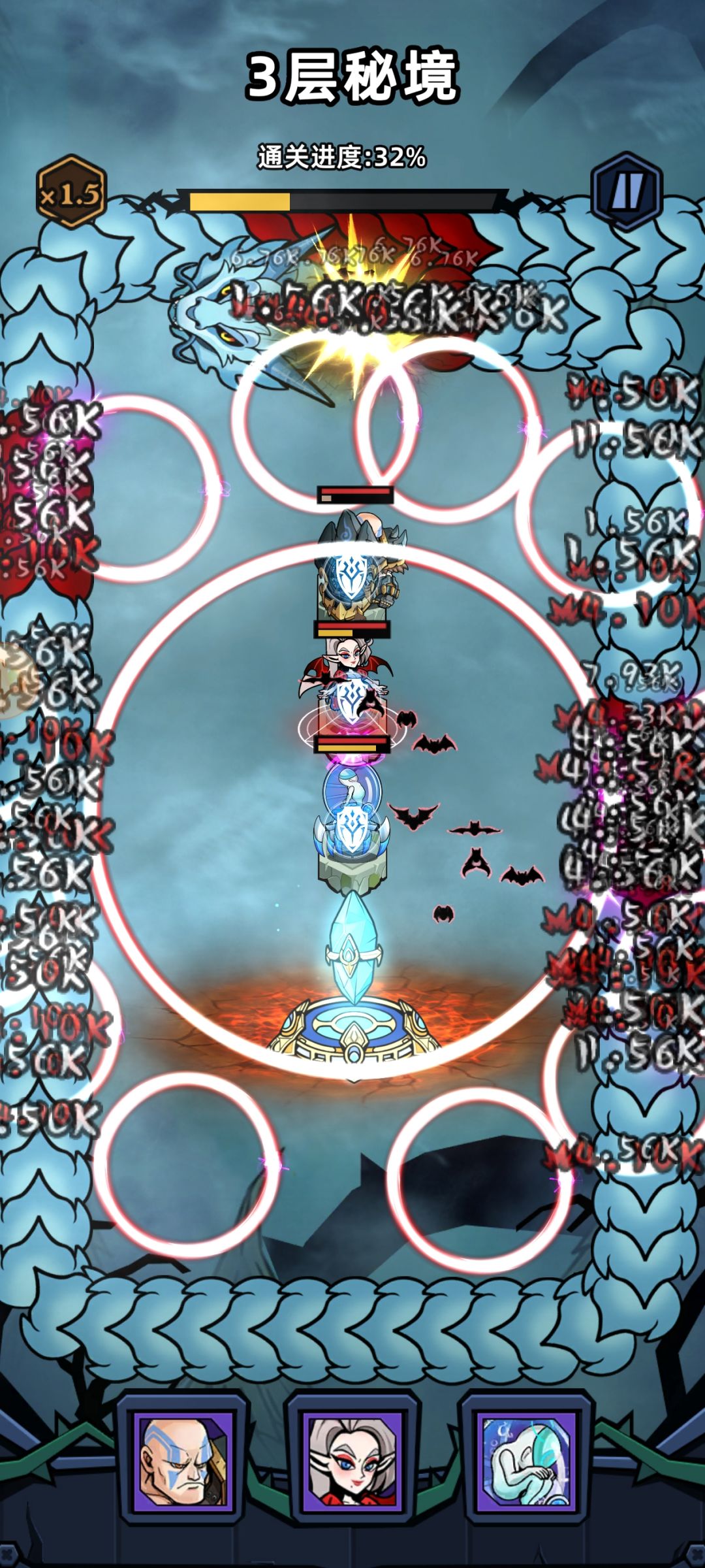 群里老有抱怨卡在10-15的反伤,又可以装一装了。主线的话,BOSS血量不算夸张,直接莽,靠高级角色免伤次数符石,加光头减伤也能过。挑战的话,不是大佬号别想了。光头➕天劫,其余角色送死掉。天劫带毒,别带弹道数量相关的。光头带回血果,估计得2个以上。然后生命果,加减能量,有的话最好。一次最多反弹2个弹道数,而且打到光头的经常只有一发。甚至天劫也可以死掉,毒光头慢慢撸,我是没那个耐心打一二十分钟。卡关